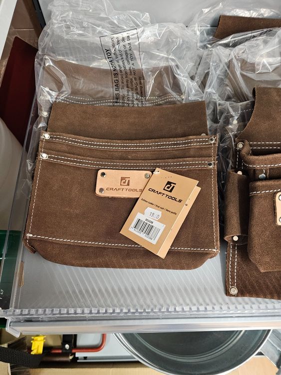 Handwerker, diese Nageltasche aus echtem Rindleder ist ein echter Klassiker! Mit den Maßen 23x27cm bietet sie genug Platz für Nägel, Schrauben und Kleinteile. Die zwei praktischen Taschen helfen dir, alles ordentlich zu sortieren. Die integrierte Hammerschlaufe ist super praktisch - so hast du deinen Hammer immer griffbereit. Aus robustem Leder gefertigt, hält diese Tasche jahrelang und wird mit der Zeit noch schöner. Perfekt für die Baustelle, die Werkstatt oder unterwegs. Ein zeitloses Stück, das sich bewährt hat und einfach funktioniert. Qualität, die man sieht und spürt!