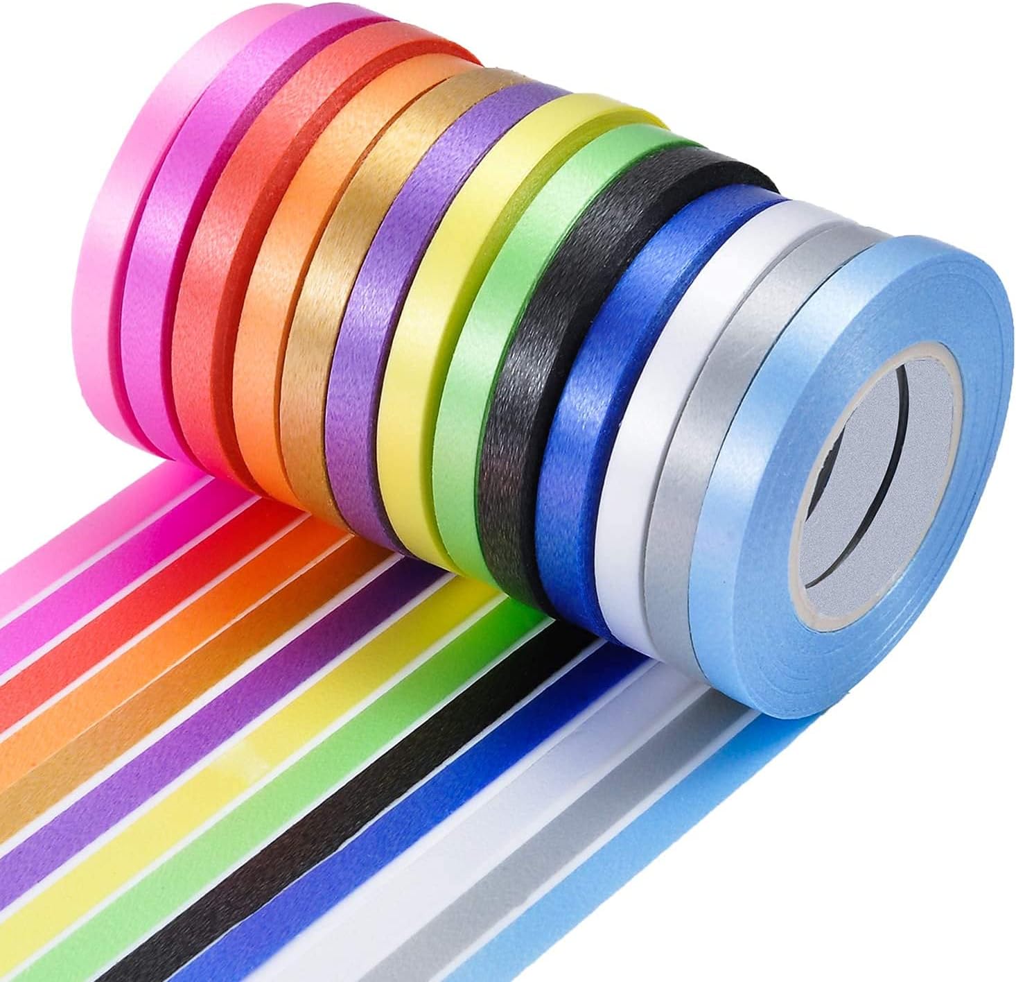 Perfekt für alle Bastel- und Dekoprojekte! Dieses Keadic Ringelband Set enthält 48 Rollen Geschenkband in 16 verschiedenen Farben plus einen praktischen Bandschneider. Jede Rolle ist 5mm breit und 9,1m lang - insgesamt stolze 528 Meter Bastelspaß! Die Bänder gibt es in glänzend, metallisch und Laser-Optik. Einfach mit einer Schere locken und schon entstehen wunderschöne Dekorationen für Geschenke, Ballons, Blumensträuße oder Party-Deko. Das hochwertige Kunststoffmaterial ist reißfest und leicht zu formen. Ideal für Floristen, Event-Dekorateure oder Hobby-Bastler. Ob Hochzeit, Geburtstag, Weihnachten oder Valentinstag - mit diesem Set bist du für jede Gelegenheit bestens ausgestattet! Die praktischen Spulen sorgen für ordentliche Aufbewahrung ohne Verwicklungen.
