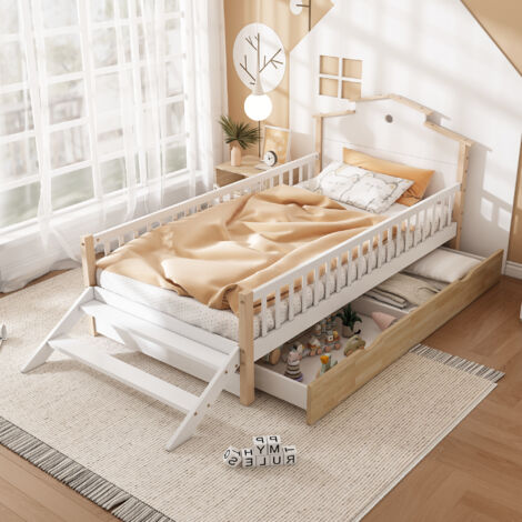 Träumst du von einem gemütlichen Bett für dein Kind? Dieses wunderschöne Kebnor Kinderbett in Weiß mit süßen Stern- und Mond-Verzierungen macht Kinderherzen höher schlagen! Aus massiver Kiefer gefertigt und mit umweltfreundlicher Farbe lackiert. Die 48 cm hohen Seitengitter mit Sicherheitsschloss sorgen für absolute Sicherheit - kein Herausfallen mehr! Das Bett misst 90x190 cm und trägt bis zu 120 kg. Perfekt für Kinder ab 3 Jahren. Der minimalistische Stil passt in jedes Kinderzimmer, ob nordisch, verspielt oder modern. Einfache Montage mit detaillierter Anleitung - auch für Heimwerker-Neulinge machbar. Die Lattenroste sind im Lieferumfang enthalten, nur die Matratze musst du separat besorgen (empfohlene Dicke: 10-15 cm). Schafft eine traumhafte Schlafumgebung, die die Fantasie deines Kindes anregt. Ein Bett, das mitwächst und lange Freude bereitet! Übrigens: Die weiße Farbe lässt sich super mit anderen Möbeln kombinieren.