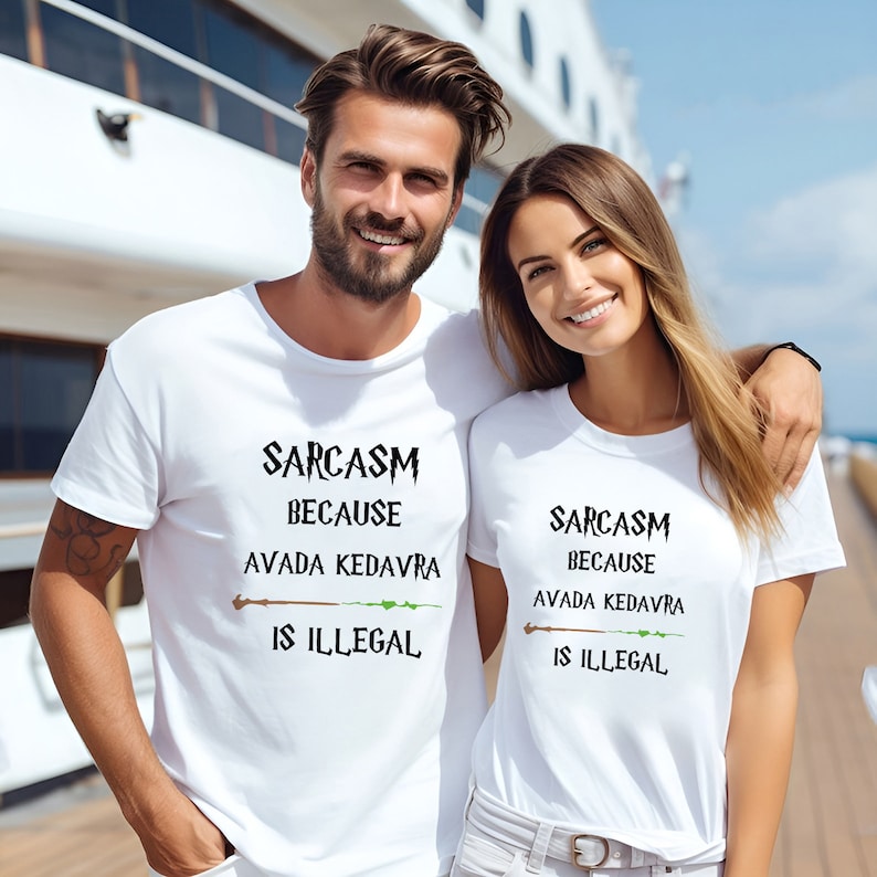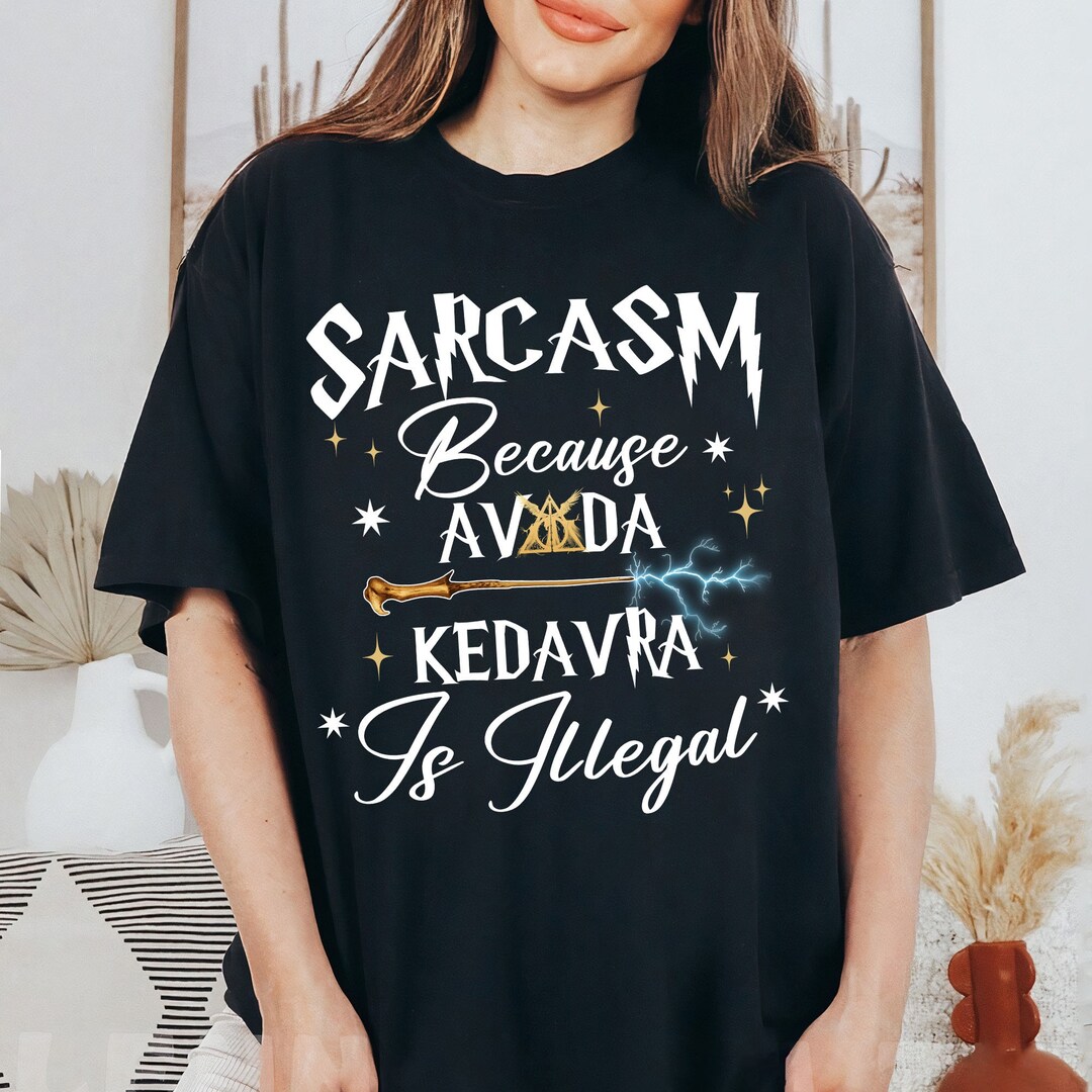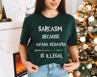 Für alle Harry Potter Fans mit Sinn für Humor! Dieses coole T-Shirt mit dem Aufdruck 'Sarcasm Because Avada Kedavra is Illegal' ist einfach genial. Aus weichem Polyester, angenehm zu tragen und perfekt für den Sommer. Kurze Ärmel, normale Länge - passt super zu Jeans, Leggings oder Röcken. Lässiger Style für jeden Tag. Ob zur Arbeit, Uni, Festival oder einfach so - mit diesem Shirt zeigst du deine Liebe zu Harry Potter auf witzige Art. Das grafische Design ist qualitativ gut verarbeitet und hält auch nach häufigem Waschen. Perfekt als Geschenk für Potterheads oder einfach für dich selbst. Mach dich bereit für Komplimente und schlaue Kommentare!