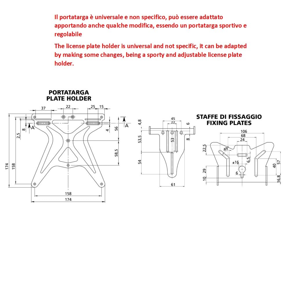 Alles im richtigen Winkel! Dieser universelle Kennzeichenhalter passt an fast jedes Motorrad - inklusive deiner Suzuki SFV Gladius 650. Voll verstellbar in Höhe, Breite und Neigung für perfekte Positionierung. Robuste Epoxidpulverbeschichtung in Schwarz für langanhaltenden Schutz. Mit Blinkerwegverstellung und Vorbereitung für Kennzeichenbeleuchtung. Maße 270x190x35 mm bieten genug Platz für dein Kennzeichen. Einfache, flache Montage am Heck. Auch mit kleinen Anpassungen für andere Modelle geeignet. Mach dein Bike individuell und verleihe ihm einen cleanen Look - mit diesem vielseitigen Kennzeichenhalter, der genau das hält, was er verspricht!