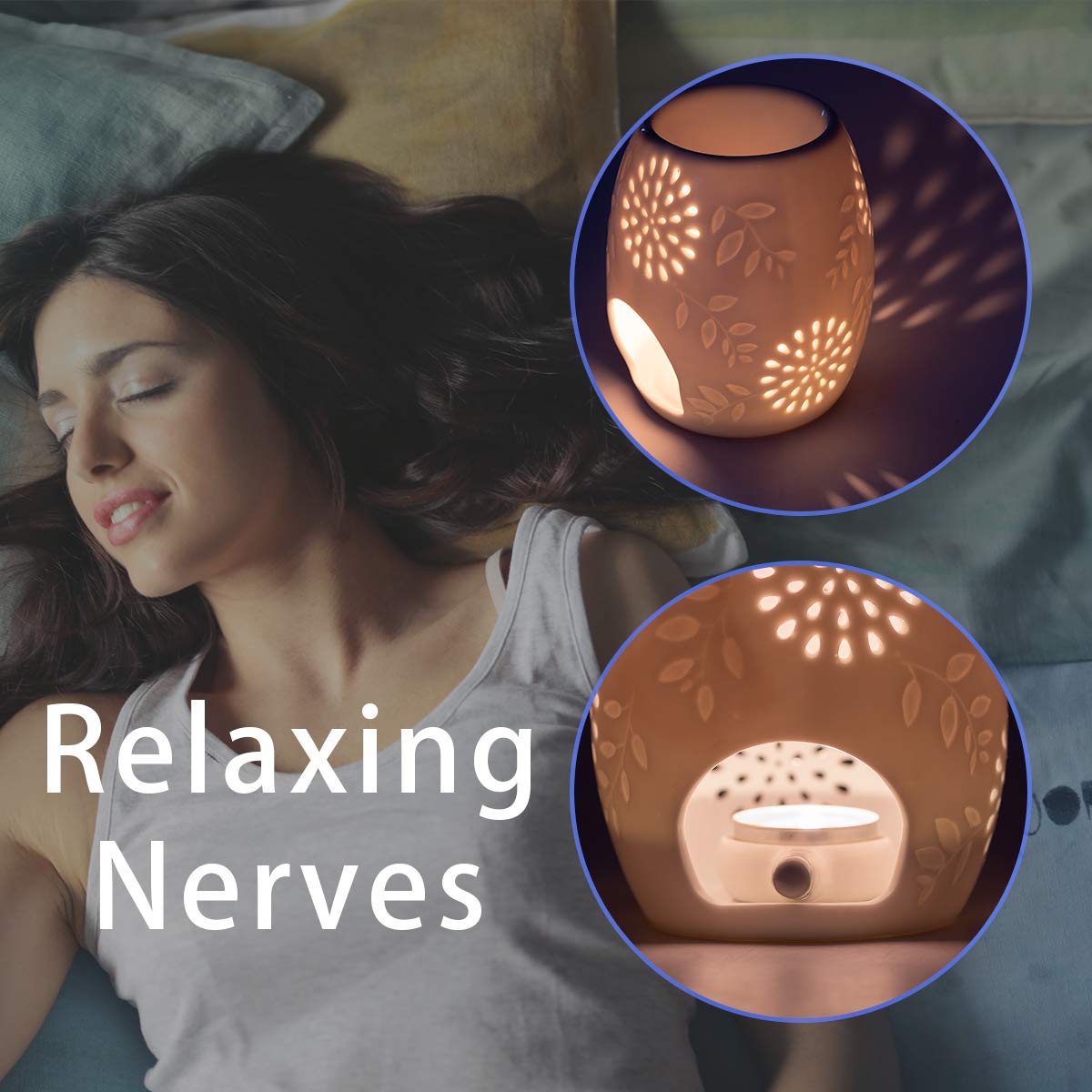 Diese wunderschöne Keramik-Aromalampe mit ausgeschnittenem Blumen-Design verbreitet nicht nur wunderbare Düfte, sondern ist auch ein echter Hingucker! Einfach Wasser und ein paar Tropfen ätherisches Öl in die Schale geben, Teelicht darunter anzünden und schon verbreiten sich beruhigende Düfte im Raum. Das Licht scheint durch die Blumenmuster und wirft bezaubernde Schatten an die Wand. Perfekt für Entspannung, Yoga, Meditation oder einfach für eine gemütliche Atmosphäre zu Hause. Achtung: Kerzen und ätherische Öle sind nicht im Lieferumfang enthalten. Mit 8x8,5 cm kompakt aber wirkungsvoll - ein tolles Geschenk für Wellness-Fans!