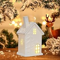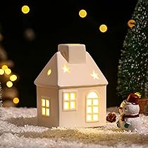 Jedes Haus ein Unikat - unterschiedliche Formen und Größen. Matt-weiße Keramik - edel und zeitlos. Warmes LED-Licht schafft gemütliche Atmosphäre.