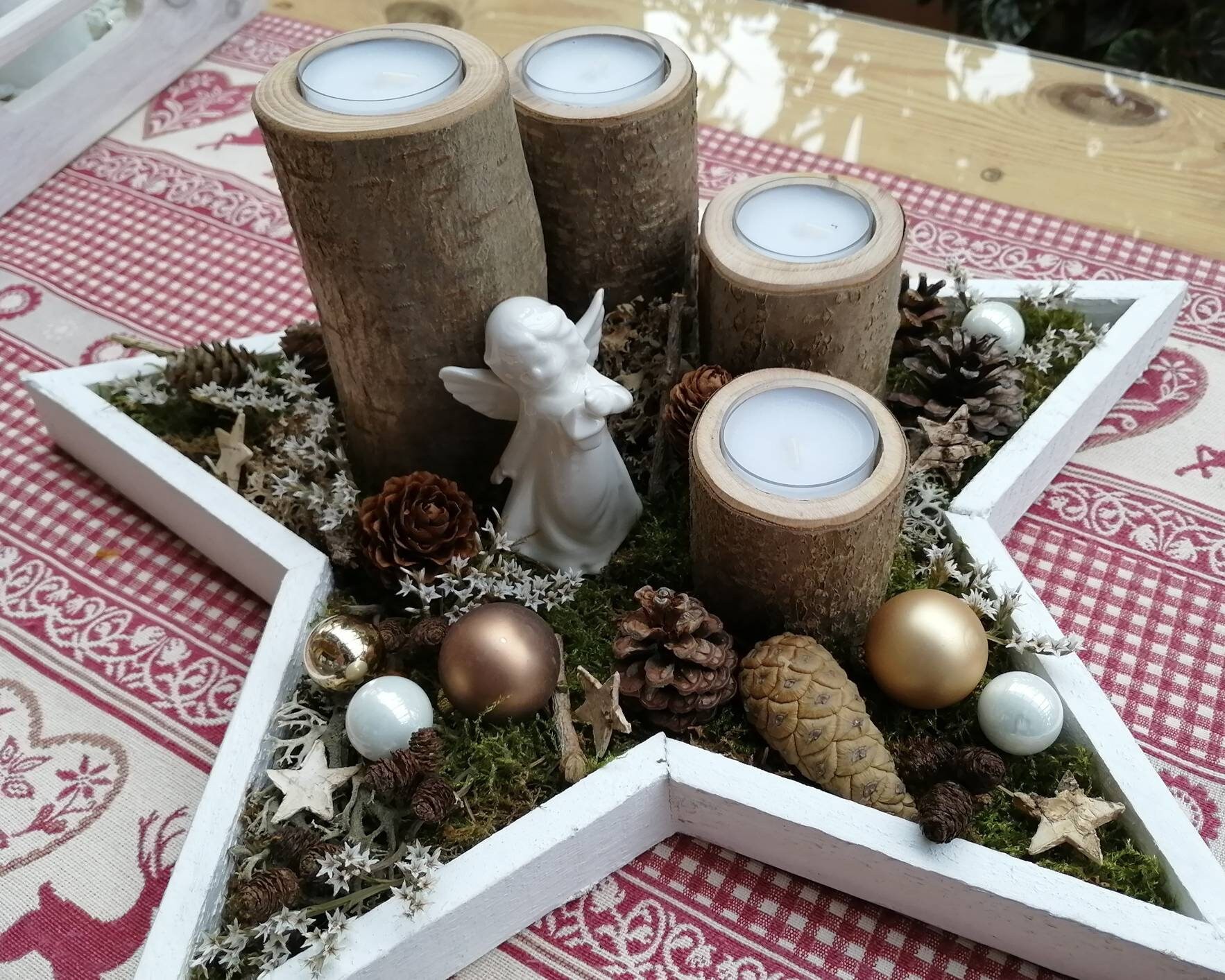 • LS-LebenStil Kerzenhalter Holz 53cm Grau Braun - Adventskranz & Deko Tablett