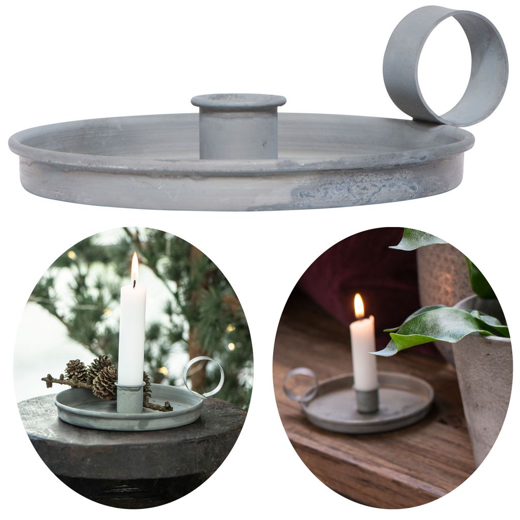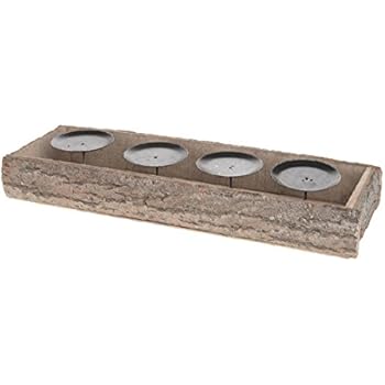LS-LebenStil Kerzenhalter Holz 53cm Grau Braun - Adventskranz & Deko Tablett
