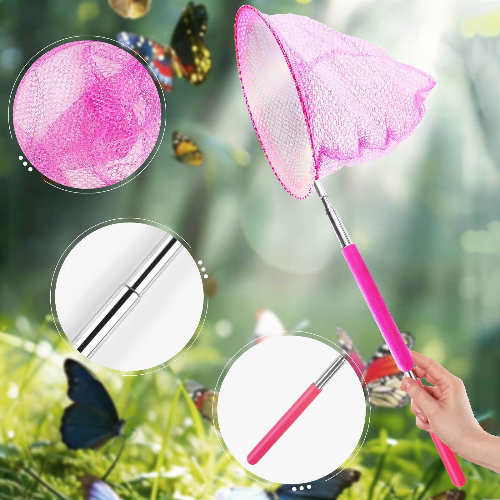 Ab nach draußen mit den Kids! Dieses 5er Set Kescher macht Naturerkundung zum Abenteuer. Mit teleskopierbaren Stangen von 38-86cm - perfekt für kleine und große Entdecker. Die Netze haben 20cm Durchmesser und sind 21cm tief. Aus weichem Mesh-Gewebe das Insekten nicht verletzt. In 5 knalligen Farben: Rot, Blau, Grün, Orange, Gelb - jedes Kind hat seine Lieblingsfarbe. Perfekt zum Schmetterlinge fangen, aber auch für kleine Fische, Käfer oder Libellen. Die Edelstahl-Stangen sind robust und der Gummigriff liegt gut in der Hand. Fördert die Koordination und macht einfach Spaß! Nach dem Ausflug einfach zusammenschieben - platzsparend in der Tasche. Das ideale Geschenk für kleine Naturforscher!
