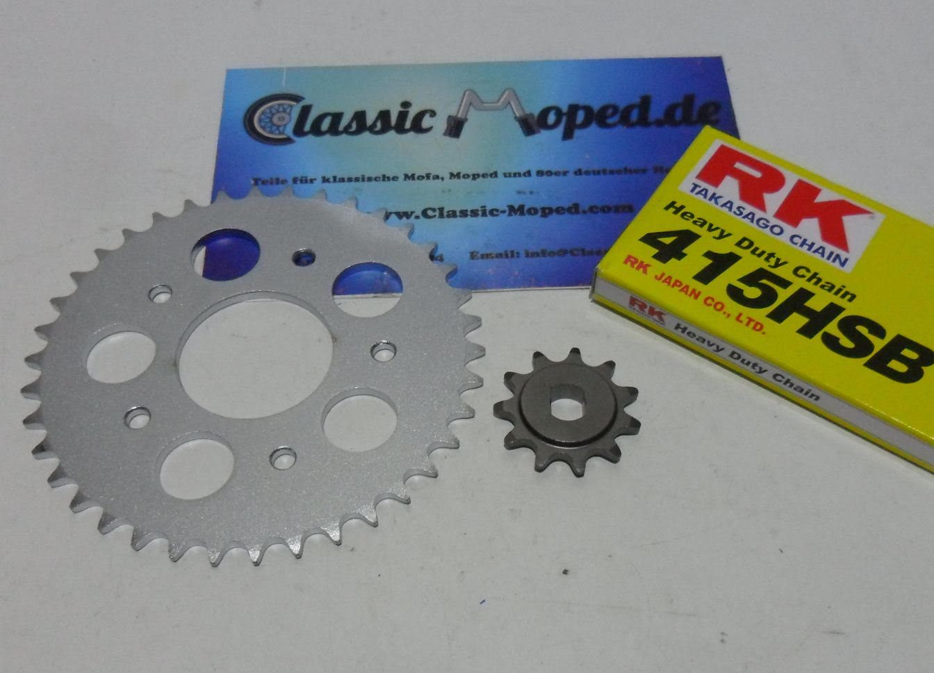 Im Set ist alles drin, was du brauchst: Die hochwertige DID X-Ring Kette in gold (extra verstärkt, Zugfestigkeit stolze 3720kg!), ein 15-zähnges Ritzel und ein 45-zähnges Kettenrad. So hast du die Original-Übersetzung wieder hergestellt.