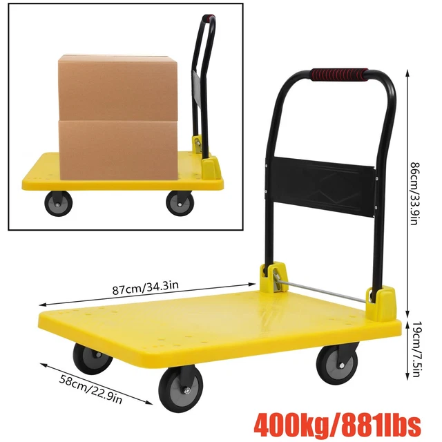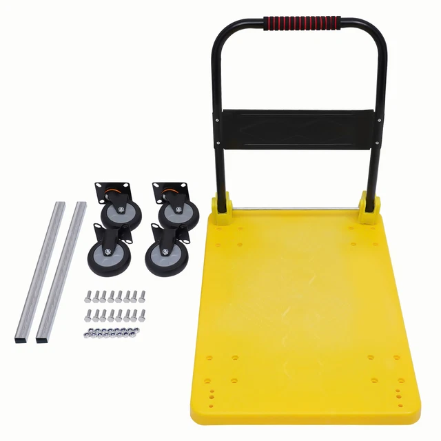Der stärkste Helfer für deine Werkstatt! Dieser Schwerlast-Plattformwagen trägt bis zu 680 kg - da macht nichts mehr schlapp! Mit großen 78x48 cm Flachbett aus verstärktem Stahl. Besonders praktisch: Er ist klappbar! Einfach den gepolsterten Griff umlegen und platzsparend verstauen. Mit 4 Rädern - zwei starre Lenkrollen und zwei Schwenkräder mit Bremse für sicheres Abstellen. Die 10 cm großen Vollgummiräder rollen auch auf unebenen Böden super. Perfekt für Lager, Werkstätten, Gastronomie oder den privaten Gebrauch. Bewegen war noch nie so einfach! Ob schwere Maschinen, Baustoffe oder Getränkekisten - dieser Wagen macht schwere Arbeit leicht. Ein echter Game-Changer für jeden, der regelmäßig schwere Lasten bewegen muss!
