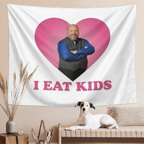 Lustiger Meme-Spaß für deine Wand! Dieser \I Eat Kids Bertram\ Wandteppich bringt Humor in jedes Zimmer. 96,5x73,7cm groß - ein echter Hingucker!\\n\\nAus weichem 100% Polyester mit HD-Druck. Farben bleiben lange kräftig. Einfach aufzuhängen mit beiliegenden Clips und Nägeln.\\n\\nPerfekt für Schlafzimmer, Wohnzimmer oder Studentenbude. Maschinenwaschbar in kaltem Wasser. Einzigartige Deko die garantiert Gesprächsstoff liefert!\\n\\n• 96,5x73,7cm\\n• 100% Polyester\\n• HD-Digitaldruck\\n• Mit Aufhänge-Clips\\n• Maschinenwaschbar\\n• Lustiges Meme-Design
