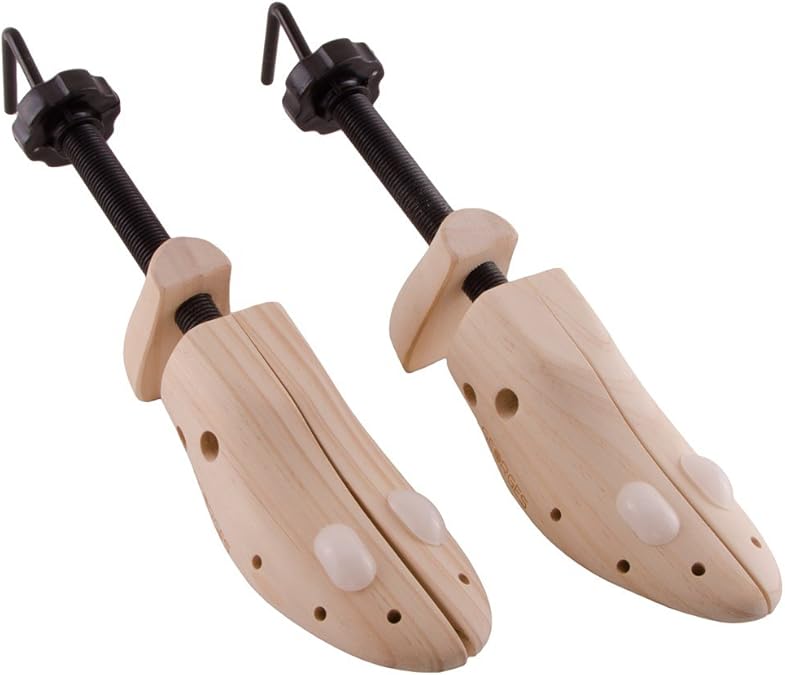 Hey, diese Schuhspanner aus Kiefernholz sind ein Game-Changer für deine Schuhe! Im 2er-Set hast du gleich genug für deine Lieblingspaare. Das natürliche Kiefernholz ist nicht nur nachhaltig, sondern saugt auch super Feuchtigkeit auf - deine Schuhe trocknen besser und riechen immer frisch! Die clevere Doppelfeder-Technologie passt sich automatisch an die Schuhgröße an - von Größe 38 bis 46 ist alles dabei. So behalten deine Schuhe ihre original Form und bekommen keine hässlichen Gehfalten. Egal ob Lederschuhe, Stiefel oder Sneaker - diese Spanner passen für fast alles! Die Metallspiralfeder ist robust und hält ewig. Einfach in den Schuh schieben, die Feder spannt sich von selbst - mehr musst du nicht machen! Deine Schuhe bleiben länger schön und du sparst dir teure Schuh-Reperaturen. Ob Business-Schuhe oder teure Stiefel - gönn ihnen die Pflege die sie verdienen! Hol dir das Set und deine Schuhe werden's dir danken!