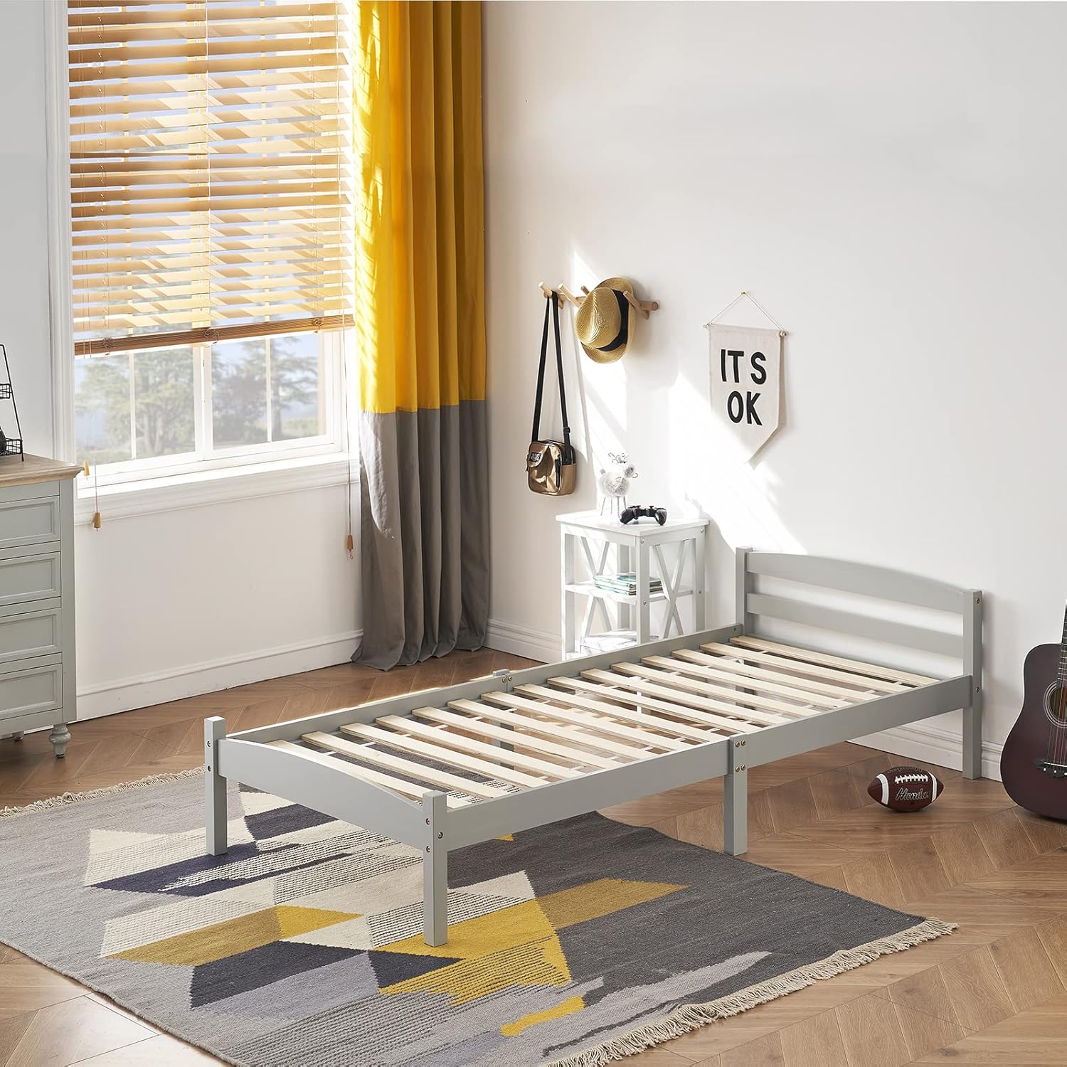 Wow, dieses HOMCOM Einzelbett ist genau das, was dein Schlafzimmer braucht! Made from natürlichem Kiefernholz und in cleanem Weiß lackiert, sieht es nicht nur mega stylisch aus, sondern ist auch super praktisch. Mit 208 x 96 x 70 cm bietet es genug Platz für erholsame Nächte. Unter dem Bett hast du satte 23 cm Freiraum - ideal für Boxen, Spielzeug oder Bettwäsche. Das Bett ist für Matratzen bis 200x90 cm gemacht und hält bis zu 120 kg aus. Montage ist nötig, aber keine Sorge - mit der Anleitung kriegst du das hin! Perfekt für kleine Zimmer, Gästezimmer oder Jugendzimmer. Die glatte Oberfläche lässt sich easy reinigen und die natürliche Holzoptik bringt diesen warmen, gemütlichen Flair in dein Zuhause. Endlich mal ein Bett, das nicht nur gut aussieht, sondern auch wirklich praktisch ist!