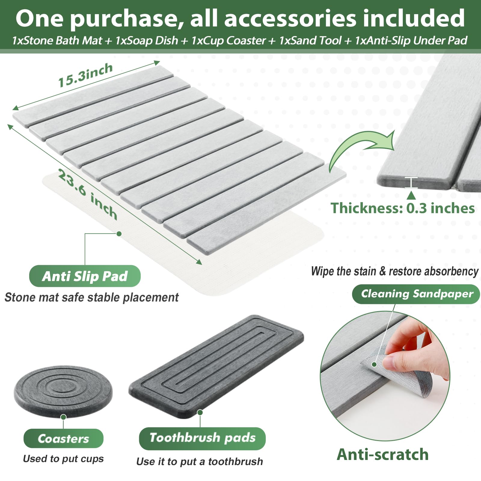 Nasse Füße nach dem Duschen? Diese Kieselgur-Matte von ZAMETTER saugt Wasser in Sekunden auf! Dreimal schneller als normale Matten - nach 20 Sekunden ist dein Badezimmerboden trocken! Mit rutschfester Unterseite - absolut sicher auf Fliesen und Laminat. Aus PU-Leder und Kieselgur - super saugstark und hygienisch! Faltbar auf nur 4,8x16cm - platzsparend in jeder Schublade! Nicht nur fürs Badezimmer, auch als Abtropfmatte für Geschirr, Untersetzer für Pflanzen oder Futtermatte für Haustiere! In Weiß oder Schwarz erhältlich - passt zu jedem Bad! Einfach auslegen, nass werden lassen, zusammenfalten - praktischer geht's nicht!