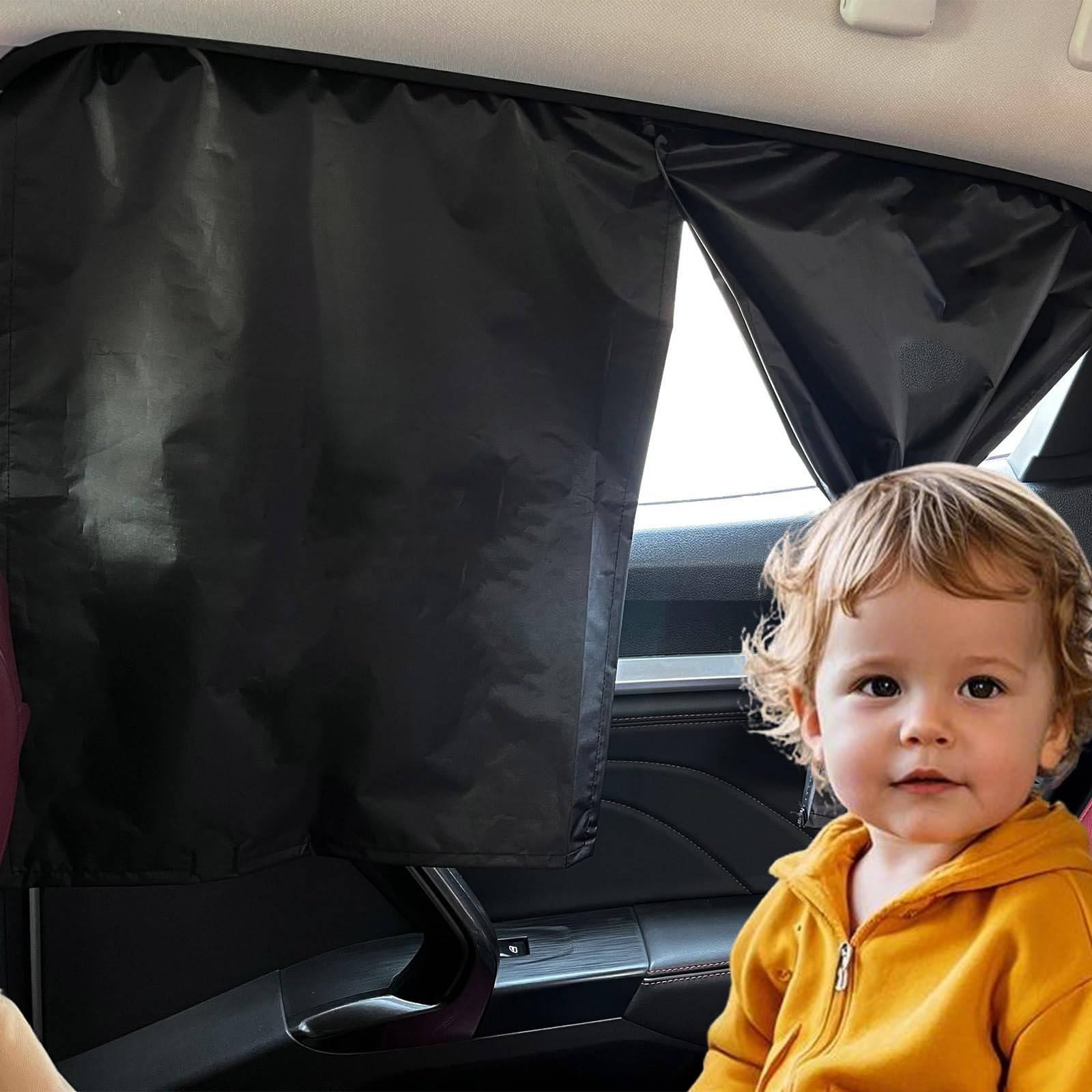 Hey, mit diesen Sonnenschutz-Blenden für die Auto-Seitenfenster wird jede Fahrt entspannter! Die beiden Teile decken die hinteren Seitenfenster komplett ab und schützen deine Kids vor der Sonne. Blockiert UV-Strahlen und hält gleichzeitig Insekten draußen - du kannst die Fenster runterkurbeln für frische Luft, ohne dass Mücken reinkommen. Das feine Netz ist atmungsaktiv und von außen kaum durchsichtig, also prima für die Privatsphäre. Dein Kind kann in Ruhe schlafen oder Filme gucken. Die elastischen Ränder passen sich an verschiedene Fenstergrößen an und mit dem Klettverschluss sind sie ratzfatz montiert. Super praktisch für lange Fahrten, Urlaub oder einfach für den Alltag. Zusammenklappbar und platzsparend - ideal für unterwegs. Macht das Auto im Sommer erträglicher und schützt sowohl die kleinen Passagiere als auch die Inneneinrichtung vor der Sonne. Einfach genial für Familien mit Kindern oder Haustieren!