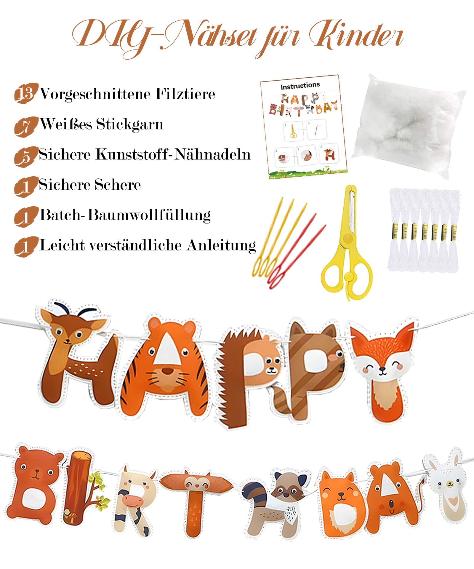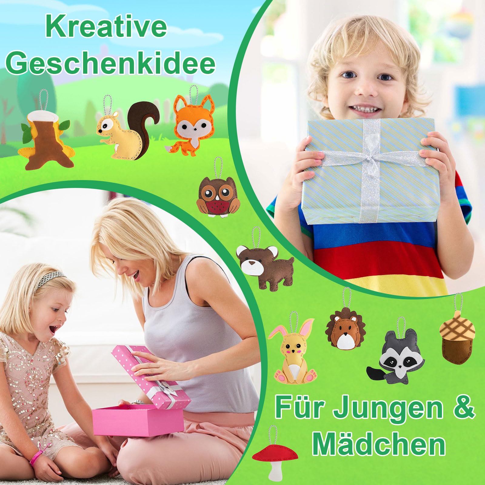 So macht Nähen lernen Spaß! Dieses süße 12-teilige Nähset mit Waldtieren begeistert Kinder ab 6 Jahren. Enthalten sind Bären, Rehe, Eichhörnchen und andere niedliche Tiere aus weichem Filz. Komplett mit 6 kindersicheren Plastiknadeln, buntem Stickgarn, Sicherheitsschere und allem Zubehör. Die fertigen Tiere werden etwa 14x18 cm groß - perfekt als Anhänger oder Deko. Aus ungiftigen, umweltfreundlichen Materialien. Fördert Feinmotorik, Kreativität und Konzentration. Tolle gemeinsame Aktivität für Eltern und Kinder. Ein wunderbares Geschenk zu Geburtstag, Weihnachten oder einfach so für kleine Bastelfans!