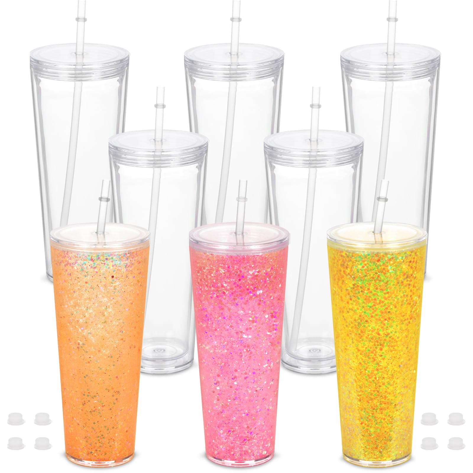 Wow, was für eine coole Idee - ein Becher, den man selbst mit Glitzer und Pailletten befüllen kann! Die 284ml Schneekugel-Becher sind super für kreative Kids, die was Einzigartiges haben wollen. Einfach durch das vorgebohrte Loch Glitzer, kleine Diamanten oder was auch immer rein - Stopfen drauf und fertig ist der persönliche Magic-Becher! Aus BPA-freiem Kunststoff, also völlig unbedenklich. Die doppelwandige Konstruktion ist auslaufsicher und hält was aus. Mit praktischem Trinkhalm-Deckel und tragbarem Griff - ideal für unterwegs. Im Set sind 5 Becher, 5 Trinkhalme und 10 Silikon-Stopfen - genug für eine ganze Runde kreativer Kinder. Perfekt für Geburtstage, als Geschenk oder einfach als besondere Überraschung. Macht Trinken zum Erlebnis und fördert die Kreativität. Einfach befüllen, verschließen und staunen, wie toll der eigene Becher aussieht! Die Augen der Kids werden leuchten, wenn sie ihren eigenen Design-Becher in den Händen halten.