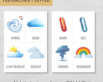 FRCOLOR 12 Wetter Lernkarten Kinder - Englisch Flash Cards Für Kindergarten | Wortkarten Lehrmaterial