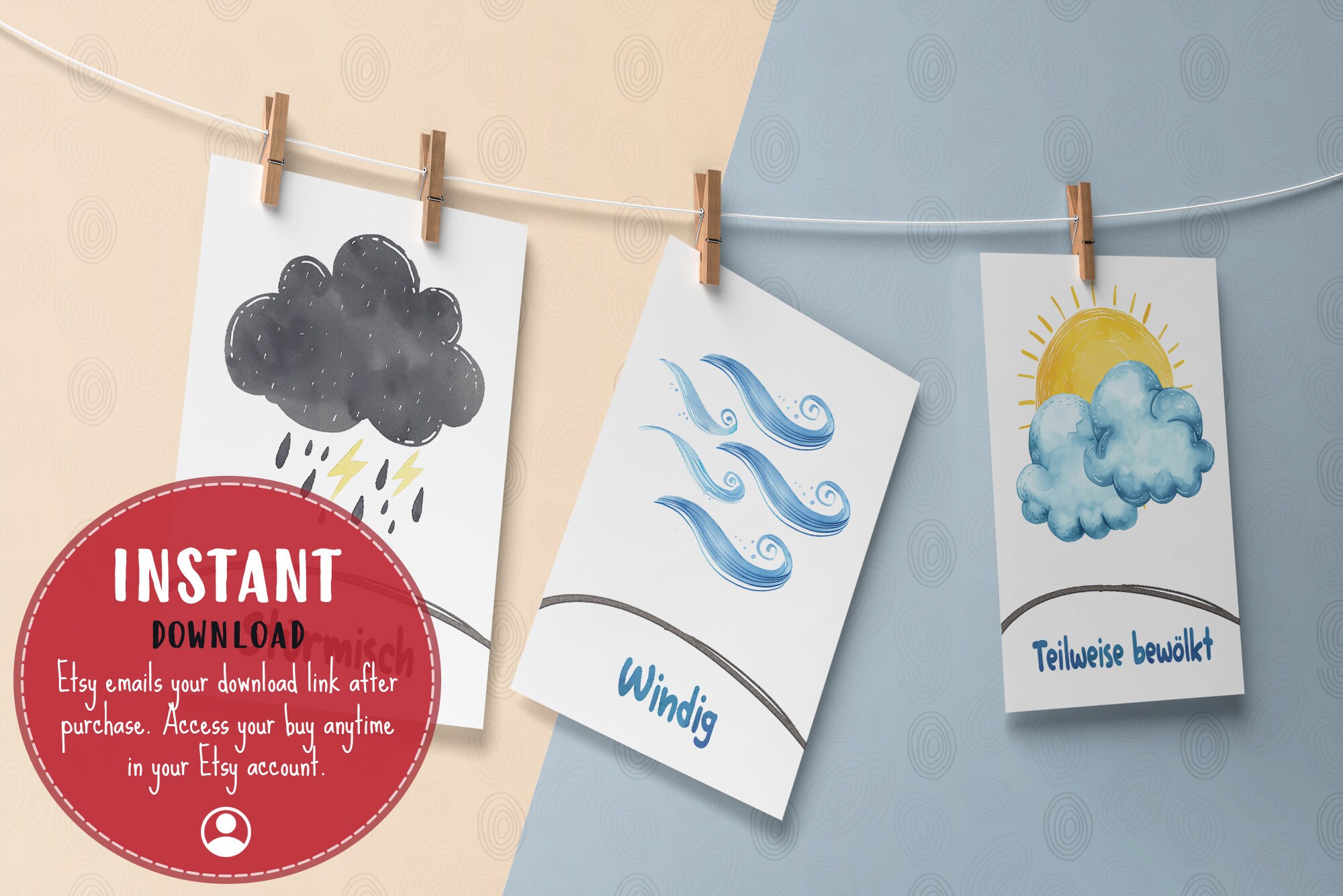Lernen mit Spaß garantiert! Diese 12 bunten Wetter-Lernkarten machen Kindern Lust aufs Englischlernen.🌈