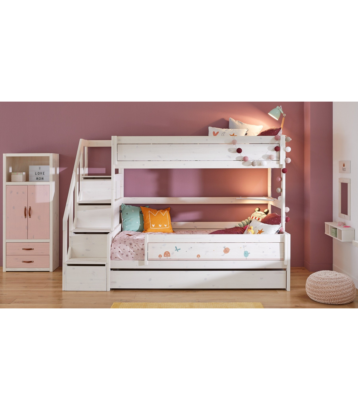 Das ultimative Abenteuer-Bett für deine Kinder! Dieses stylische Etagenbett aus Metall im hausförmigen Design bringt jede Menge Spaß ins Kinderzimmer. Das Oberbett bietet einen gemütlichen Schlafplatz, während der untere Bereich mit seiner kleinen Tür zum Spielen, Lesen und Verstecken einlädt.\n\nSicherheit geht vor: Sowohl oben als auch unten sorgen hohe Sicherheitsgittern dafür, dass deine Kinder sicher schlafen können. Die stabile Frontleiter macht den Aufstieg zum Oberbett zum Kinderspiel.\n\nDas robuste Metallgestell hält auch wilden Spielaktionen stand und die weiße Oberfläche passt zu jedem Einrichtungsstil. Mit den Maßen 140x200cm bietet es auch größeren Kindern und Jugendlichen genug Platz.\n\n• Maße: 204 x 145 x 201,5 cm (Gesamt), Liegefläche 140 x 200 cm\n• Material: Hochwertiges Metall\n• Farbe: Weiß\n• Besonderheiten: Hausförmiger Rahmen, Sicherheitsgittern, Treppe\n• Maximale Belastung: 120 kg\n• Montage: Benötigt 2 Personen, ca. 2 Stunden\n\nMehr als nur ein Bett - ein ganzer Abenteuerspielplatz fürs Kinderzimmer!
