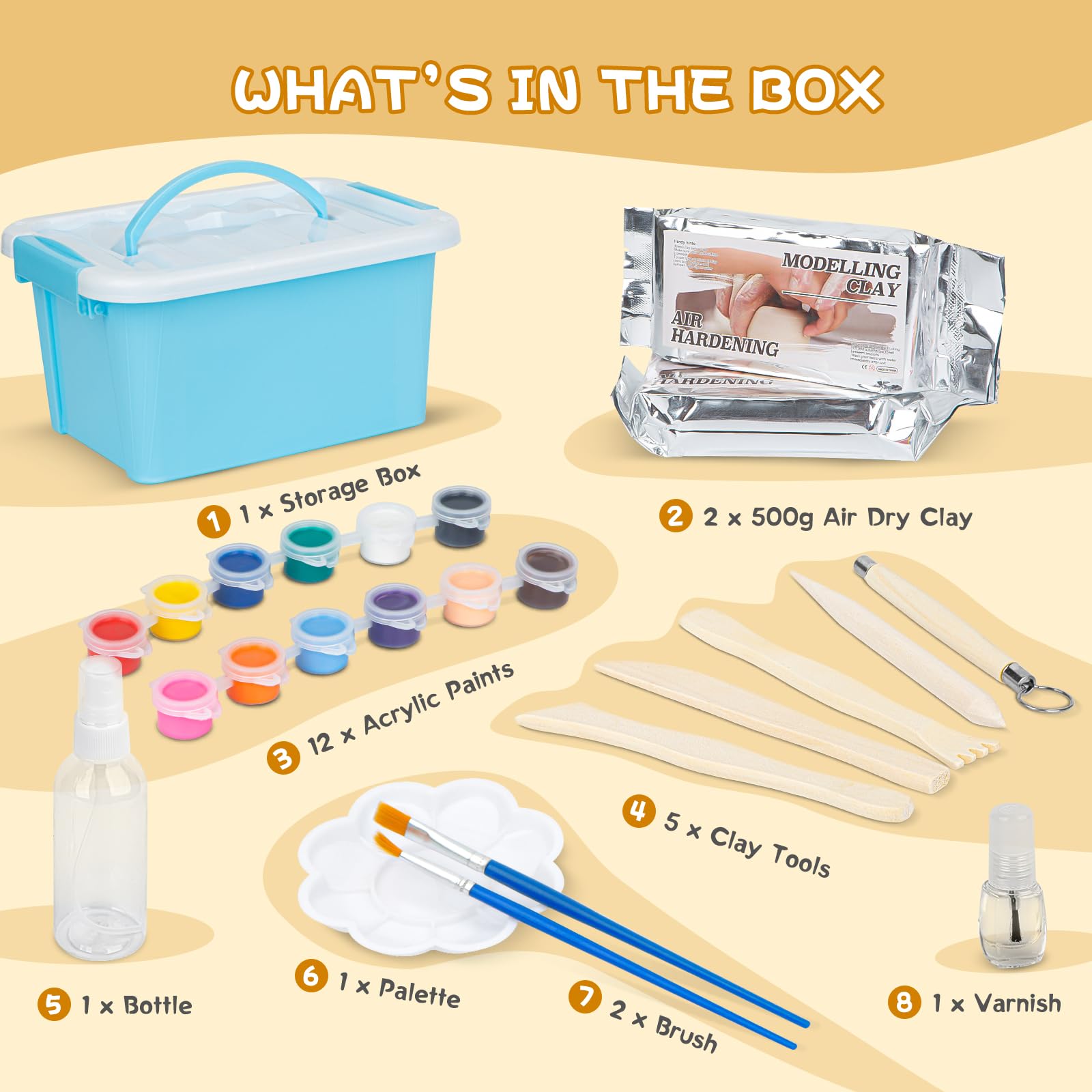 Mama, Papa - ich langweile mich! Mit diesem Ton-Set ist Schluss damit! Die Kinder können Figuren, Tiere oder was immer sie wollen formen - der Fantasie sind keine Grenzen gesetzt. Der Ton trocknet an der Luft, backen nicht nötig. Mit allen wichtigen Werkzeugen zum Schneiden, Formen und Gestalten. Fördert die Kreativität und motorischen Fähigkeiten. Perfekt für Regentage, Geburtstage oder einfach so. Die bunten Farben machen richtig Spaß! Alles in einer Box - kein Chaos. Für Jungen und Mädchen ab 3 Jahren. Einfach den Ton nehmen und loslegen - die Kleinen sind stundenlang beschäftigt! Perfektes Geschenk für kleine Künstler.