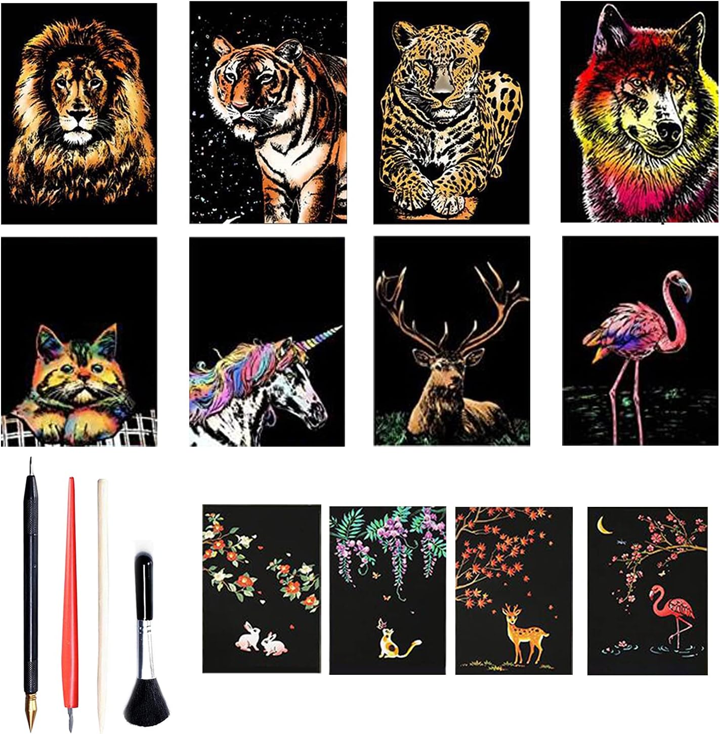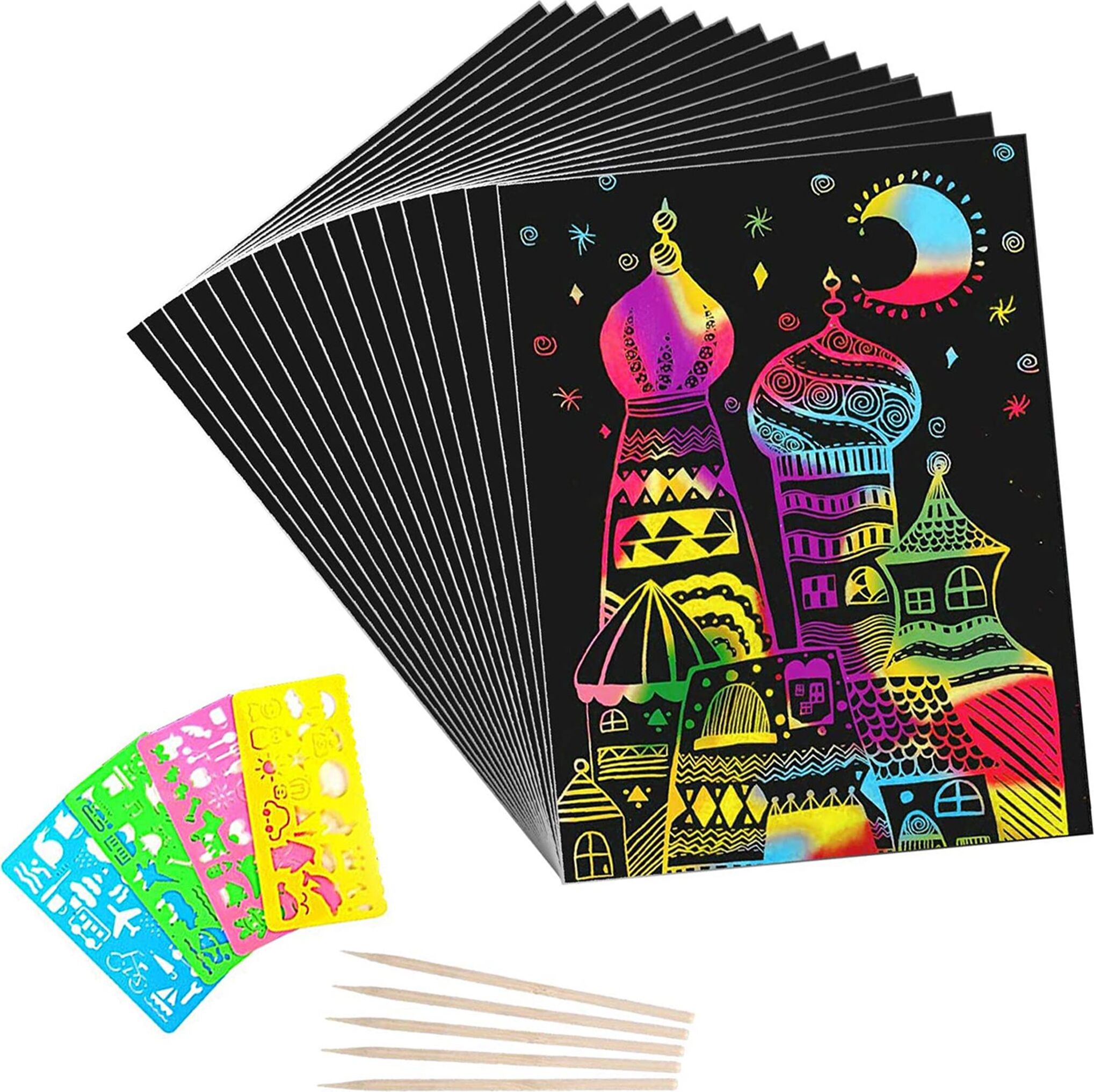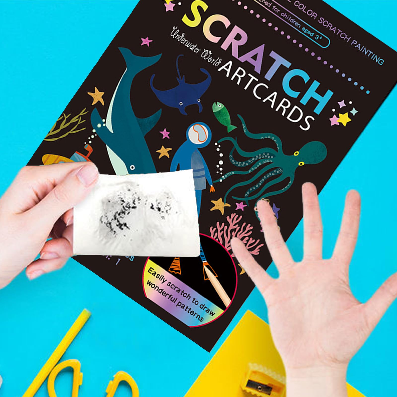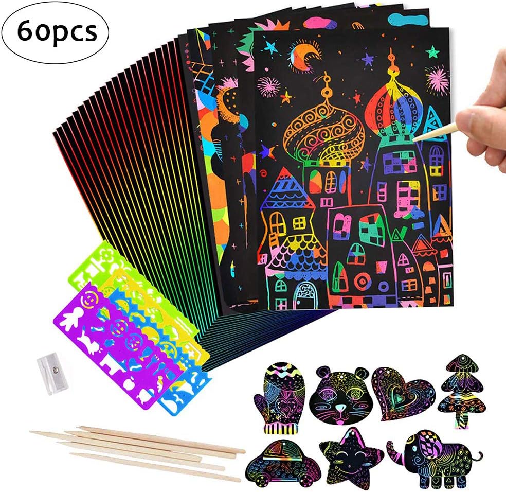 Wow, das Kratzbilder-Set von GETRICH macht richtig Spaß! Im Paket sind 4 verschiedene Themen: Dinosaurier, Weltraum, Ozean und Wald - insgesamt 36 Blätter und 4 Kratzstifte. Jedes Blatt ist 18,5x13,5cm groß und aus hochwertigem Papier. Die Kids können die vorgezeichneten Motive nachkratzen oder ihrer Fantasie freien Lauf lassen. Super für Kindergeburtstage, als Beschäftigung für Regentage oder für kreative Nachmittage. Das Material ist ungiftig und sicher für Kinder. Die Holzstifte sind robust und brechen nicht so leicht. Übrigens: Nicht nur Kinder lieben das - auch Erwachsene haben damit schon viel Spaß gehabt! Tolles Geschenk für Geburtstage, Weihnachten oder einfach so. Fördern die Feinmotorik und Kreativität deiner Kleinen auf spielerische Art. Die Augen leuchten, wenn die bunten Farben unter der schwarzen Schicht zum Vorschein kommen!