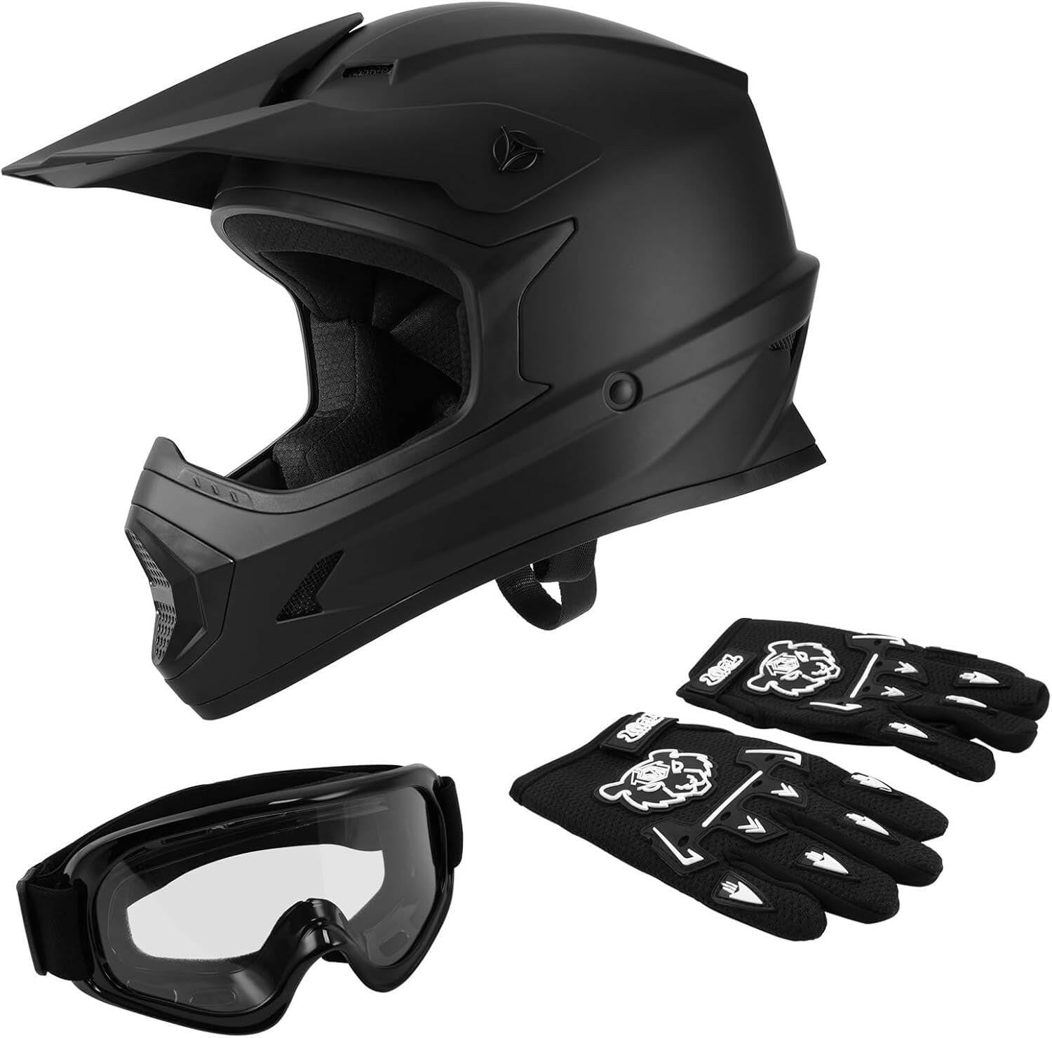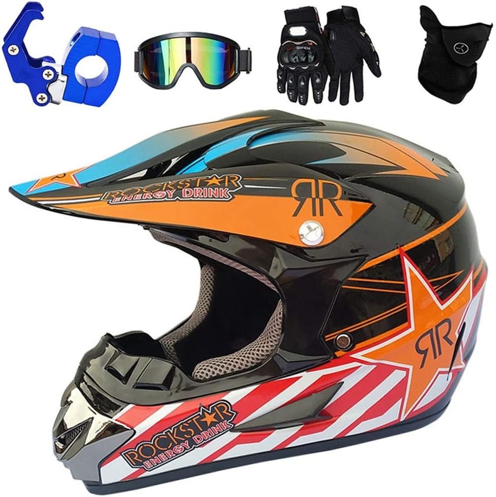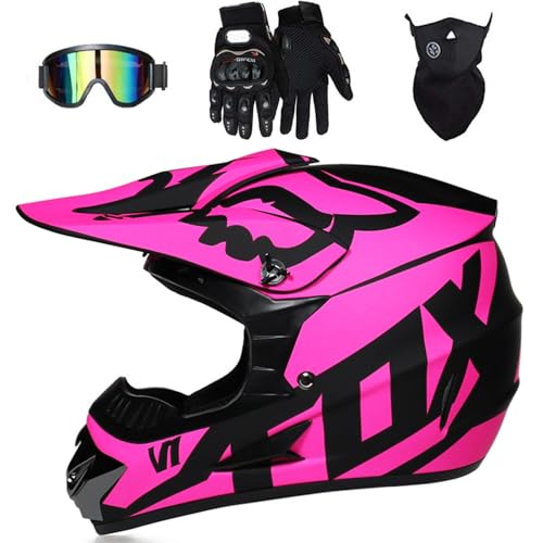 Perfekt für junge Rennfahrer! Dieses komplette Motocross-Helm-Set lässt keine Wünsche offen. Der Helm erfüllt die DOT-Sicherheitsstandards und ist damit ideal für Offroad-Abenteuer, BMX, Mountainbiking oder Quad-Fahren geeignet.\\n\\nIm Set enthalten sind praktischerweise gleich Handschuhe, eine Schutzbrille UND eine Maske - alles, was dein Kind für sicheres Fahren braucht!\\n\\nDie Handschuhe sind super atmungsaktiv und haben verstärkte Stellen an den Beanspruchungspunkten. Die Schutzbrille bietet kratzfeste klare Sicht und die Maske schützt zuverlässig vor Staub und Sonne.\\n\\nTechnische Details:\\n• Material: ABS-Kunststoff mit EPS-Pufferschicht\\n• Gewicht: ca. 950-1600g (je nach Größe)\\n• Größen: S (52-53cm), M (54-55cm), L (56-57cm), XL (58-59cm)\\n• Farben: Orange geblümt oder Grün geblümt\\n\\nTipp: Bei kräftiger Kopfform lieber eine Größe größer wählen! Der Helm ist übrigens für Jungen und Mädchen gleichermaßen geeignet.\\n\\nEgal ob für den Motocross-Parcours, die Mountainbike-Tour oder das Quad-Abenteuer - mit diesem Set ist dein Kind bestens ausgerüstet! Das komplett-Set spart dir außerdem die mühsame Suche nach passendem Zubehör. Einfach aufsetzen und los geht der Fahrspaß!