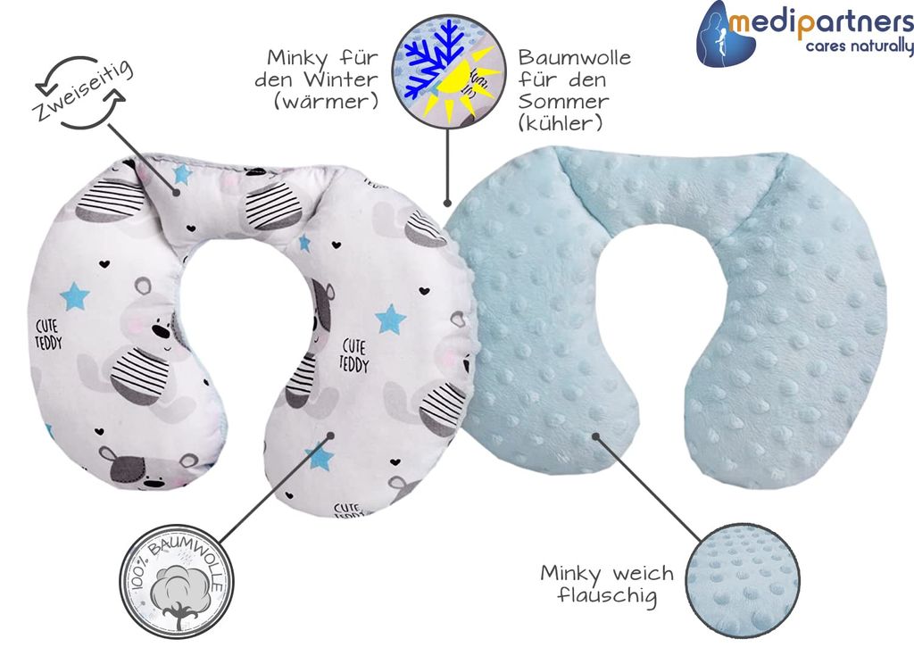 • Medi Partners Nackenkissen Kinder - Nackenhörnchen Aus Baumwolle/Minky Für Auto & Reisen