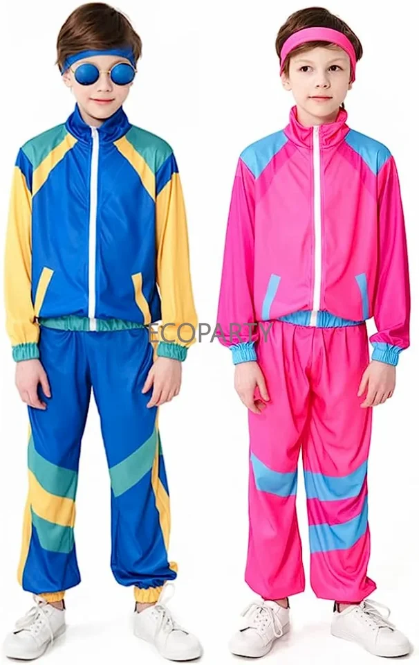 Wow, dieses 80er Jahre Outfit für Kids ist ja mal richtig cool! 6-teiliges Set mit Jogginganzug, Stirnband, Handgelenkstützen, Brille, aufblasbarem Radio und Gürteltasche. Aus weichem Polyester, hautfreundlich und farbecht. In Blau oder Schwarz erhältlich, für Jungen und Mädchen von 4-12 Jahren. Perfekt für 80er/90er Partys, Halloween, Hip Hop Tanz oder einfach als stylische Alltagskleidung. Elastische Bündchen und Kordelzug für perfekten Sitz. Mach dein Kind zum Retro-Star - bestell jetzt dieses mega coole Set!