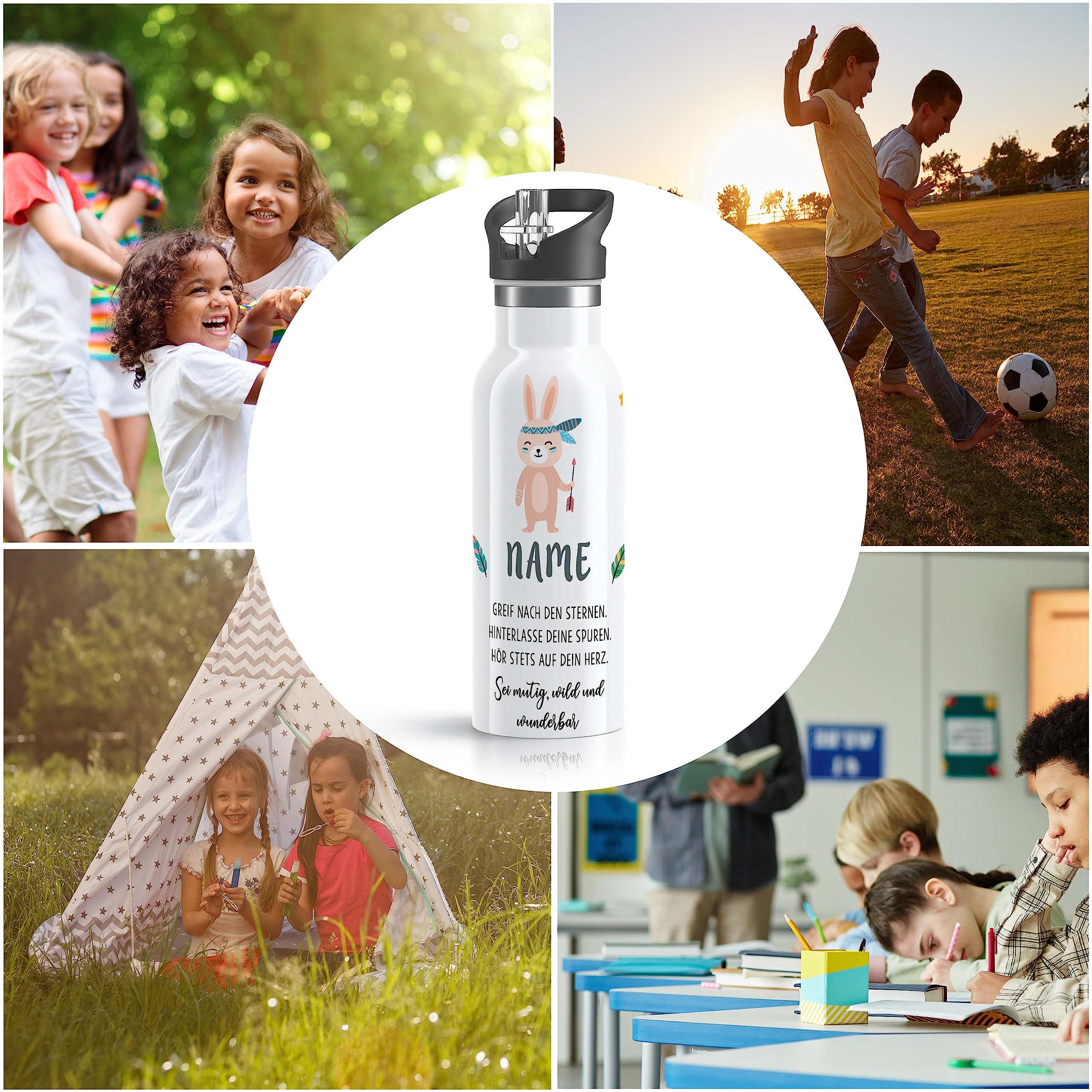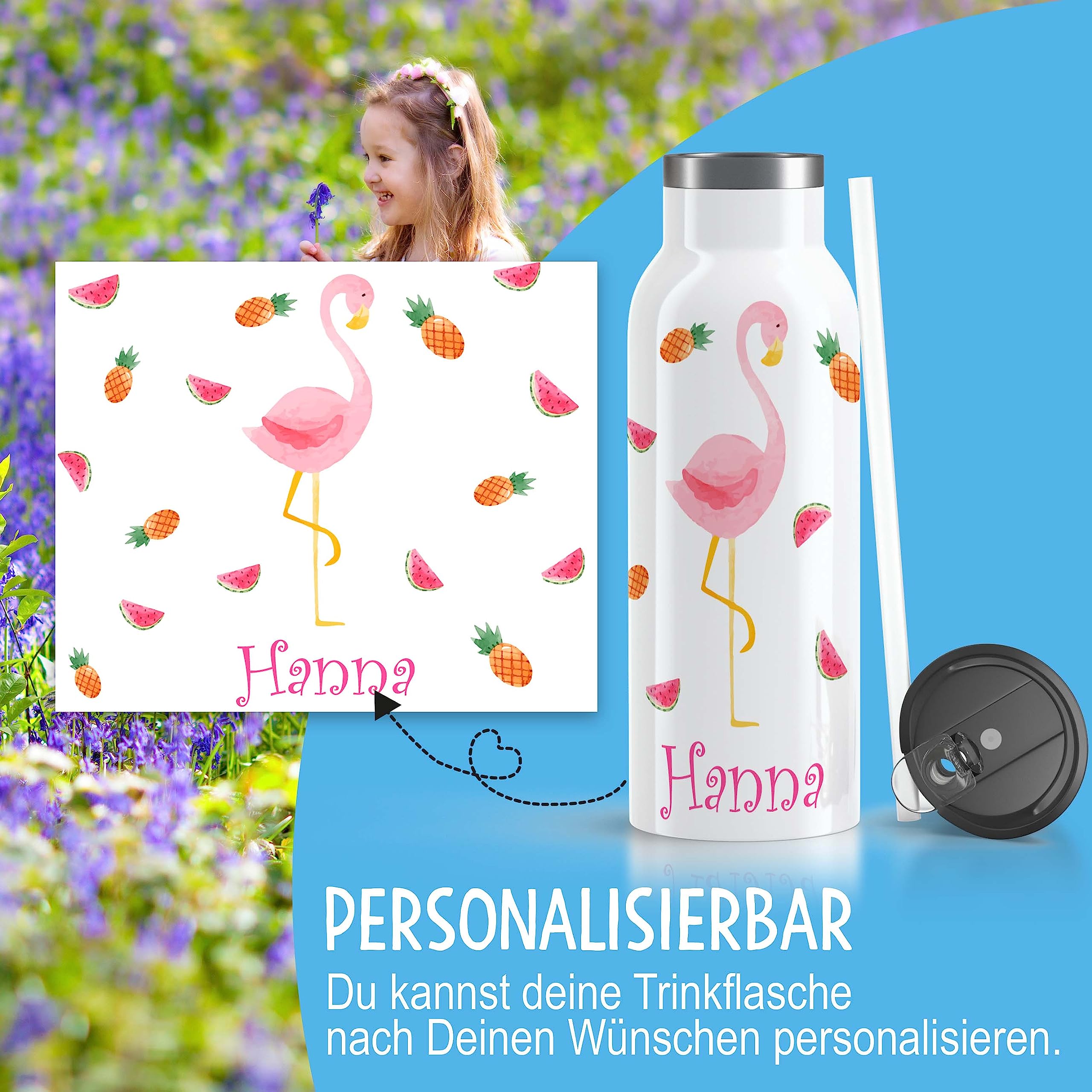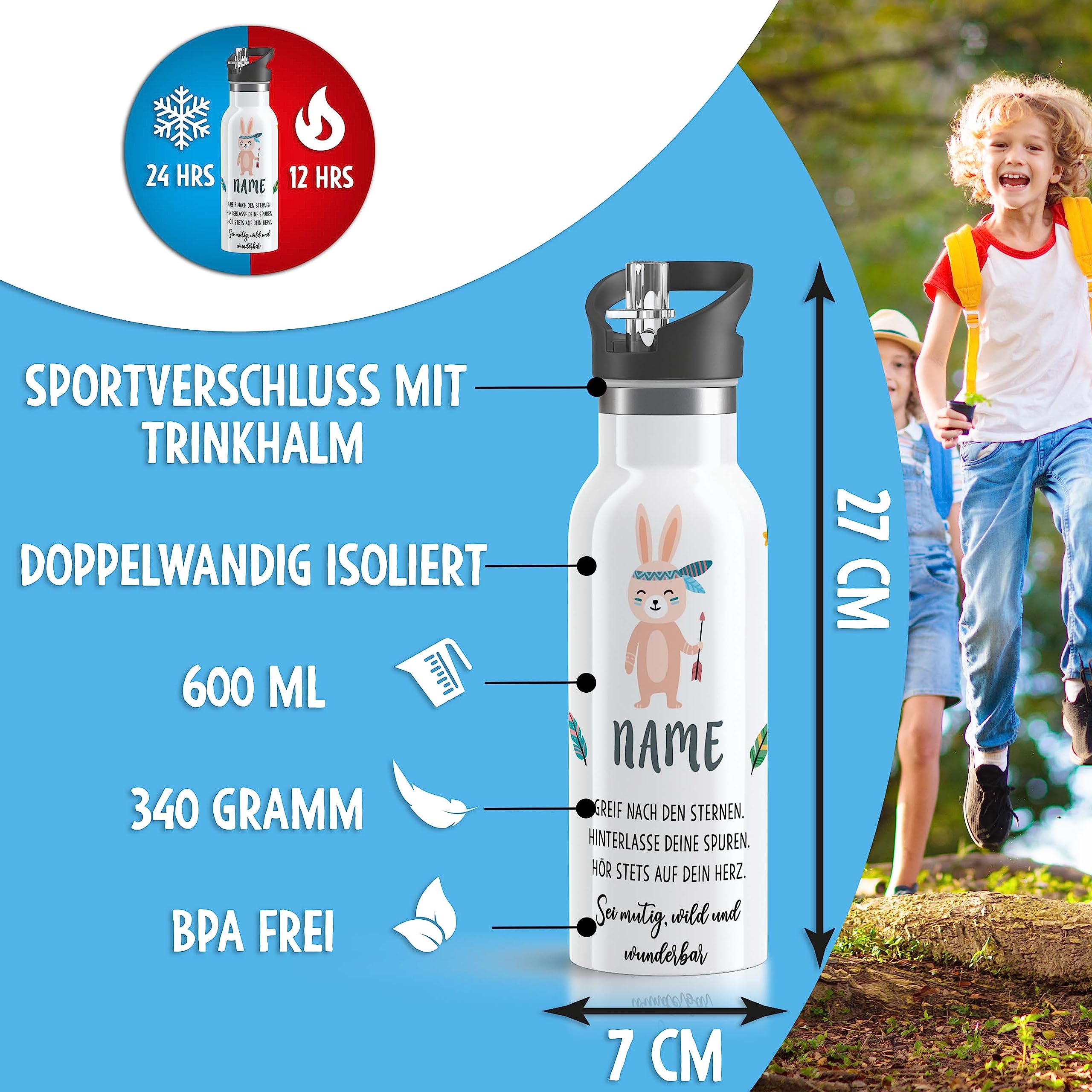 Kinder Trinkflasche Edelstahl 600 Ml - Personalisiert Mit Einhorn, BPA Frei & Isoliert