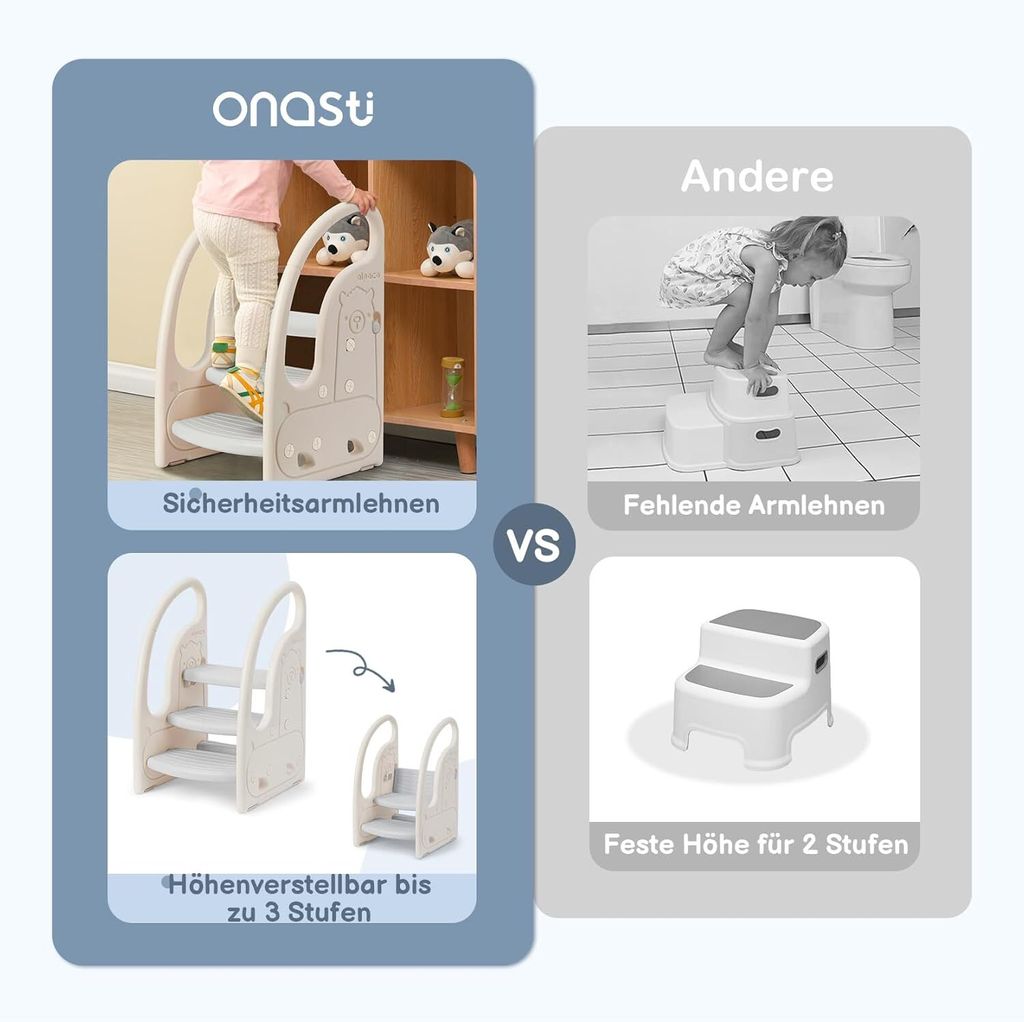 Boah, dieser Onasti Tritthocker für Kinder ist einfach praktisch! In Sekunden zusammengeklappt und platzsparend verstaut - perfekt für kleine Wohnungen. Mit dem süßen Dino-Design in Weiß macht er auch noch was her! Die 2-stufige Ausführung gibt deinem Kind die richtige Höhe für alles: Händewaschen im Bad, in der Küche helfen oder abends ins Bett steigen. Mit nur 1,2 kg super leicht zu tragen für kleine Kinderhände. Aber keine Sorge: Das stabile PP-Material hält bis zu 30 kg aus! Die A-förmige Konstruktion und rutschfeste Füße geben extra Sicherheit. Dein Kind wird selbstständiger - ob beim Zähneputzen, Töpfchen oder am Waschbecken. Und das Beste: Reinigen ist ein Kinderspiel! Einfach mit warmem Wasser abwischen, keine komplizierten Ecken wo sich Dreck sammelt. Macht das Kinderzimmer aufgeräumter und gibt deinem Kind die Freiheit, alleine an Orte zu kommen, die vorher unerreichbar waren. Ein Muss für jede Familie mit kleinen Kindern!