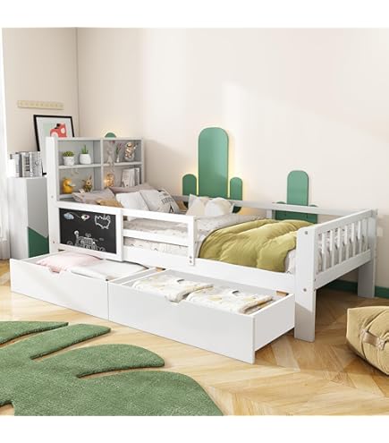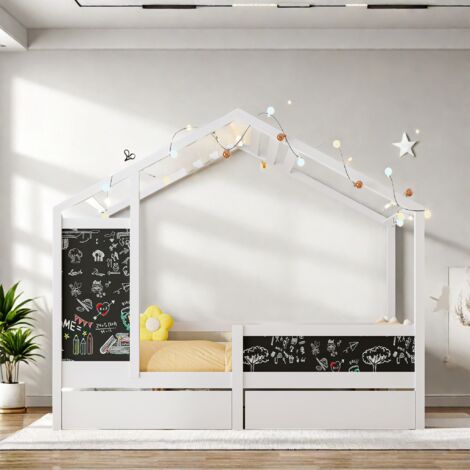 Kinderbett 90x200 Mit USB Steckdose & LED Licht - Kiefernholz Weiß