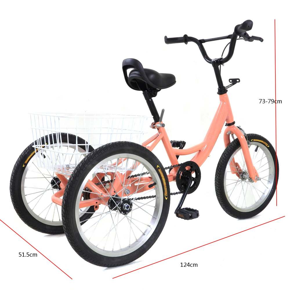 Das perfekte erste Fahrrad für dein Kind! Mit 16 Zoll Reifen und verstellbarem Sitz (46-53 cm) sowie Lenker (78-84 cm) wächst es quasi mit - von 5 bis 8 Jahre. Die beiden Stützräder geben Sicherheit beim Lernen und verhindern das Umkippen. Aus robustem Kohlenstoffstahl, der richtig was aushält. Die stoßdämpfenden Gummireifen mit grobem Profil sorgen für guten Grip und federn Unebenheiten super ab. Das Doppelbremssystem (vorne und hinten) bremst zuverlässig und die Kettenabdeckung schützt vor Verletzungen. Die Schutzbleche halten Schmutz von der Kleidung fern. Einfach zusammenzubauen - Werkzeug und Anleitung sind dabei. In gelb, rosa oder grün erhältlich. Dein Kind wird begeistert sein und kann sicher Fahrradfahren lernen!