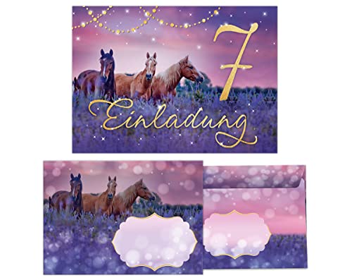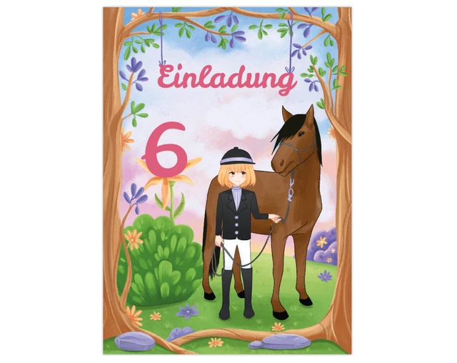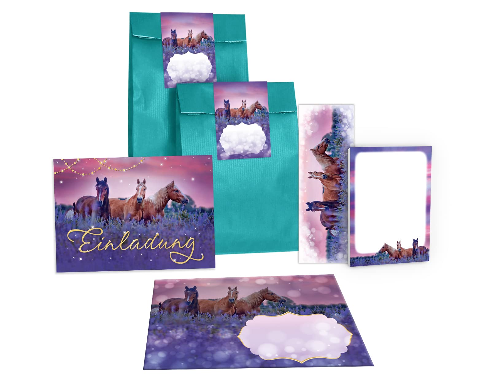 • Kindergeburtstag Einladungskarten Mädchen Pferd - 12 Karten Mit Umschlägen Und Tüten