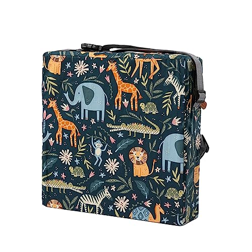 Perfekt für kleine Esser ab 2 Jahren! Diese Sitzerhöhung macht aus jedem normalen Stuhl nen kindgerechten Sitzplatz. Maße: 31,5x31,5x8cm - genau richtig für die Kleinen. Mit extra starken, verstellbaren Gurten und Schnallen - sicher fixiert und rutscht nicht! Der blaue Kunstleder-Bezug ist abnehmbar und per Hand waschbar (super praktisch bei Matschereien!). Innen dichter Schaumstoff für bequemes Sitzen. Kompaktes Design - ideal für unterwegs in Restaurants oder bei Übernachtungen. So können die Kleinen bequem mit am Tisch sitzen!