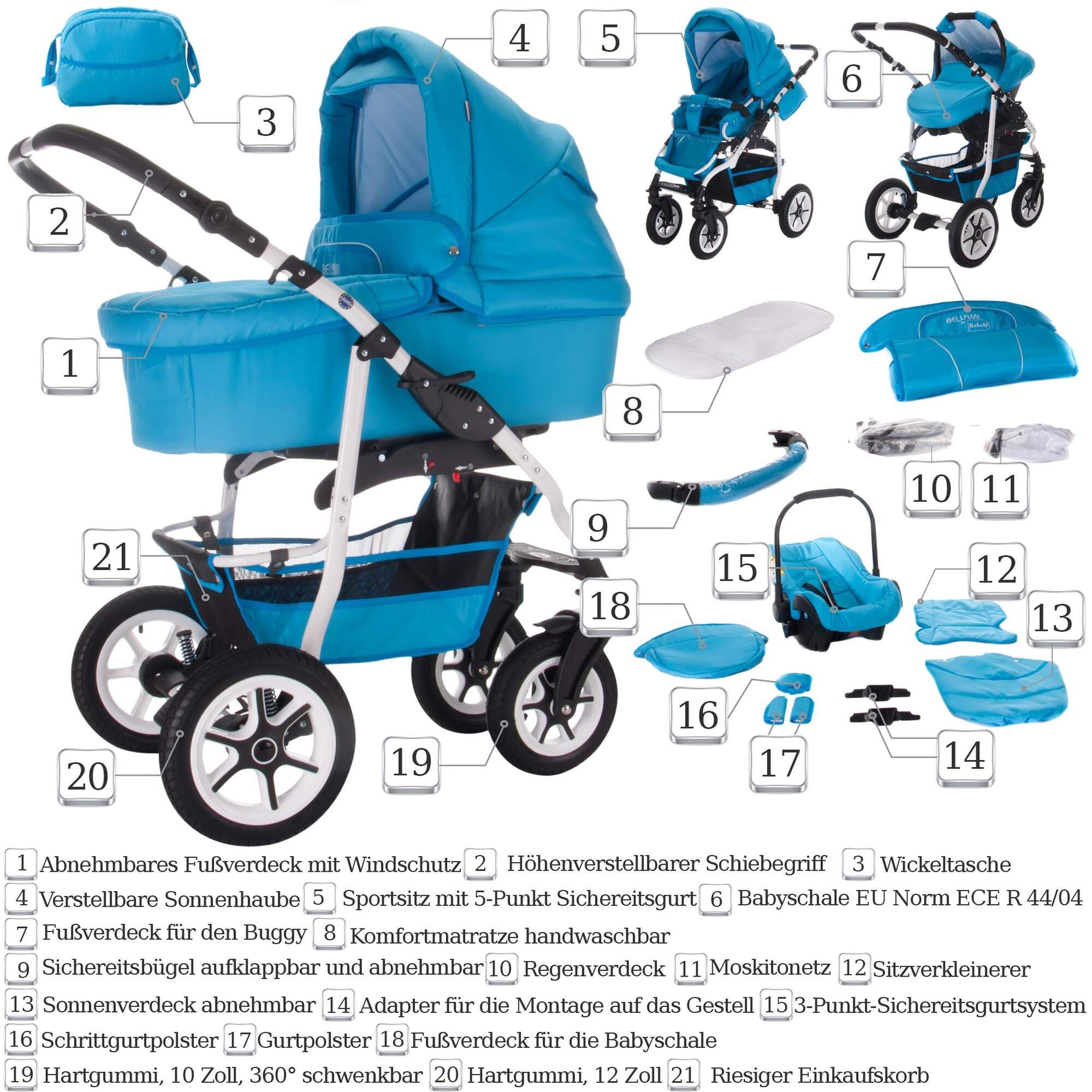 Das komplette Kinderwagen-Set für unterwegs! Der GagaDumi SoHo 3-in-1 überzeugt mit TÜV-zertifizierter Qualität und höchster Sicherheit. Inklusive i-Size Autositz für sicheres Reisen im Auto. Mit nur ca. 8 kg Gewicht superleicht und mit einer Hand zusammenklappbar - perfekt für Wohnungen ohne Aufzug und kleine Kofferräume (z.B. VW Golf). Vollständiges Zubehör inklusive: Regenabdeckung, Moskitonetz, Wickeltasche, Einkaufskorb und Becherhalter. Universelle Räder mit guter Federung für Stadt und Gelände. Wetterfest mit erweiterbarem Sonnenverdeck (UV-Schutz 50+) - ideal für das deutsche Klima! Entspricht der Norm EN 1888 und bietet maximale Sicherheit für dein Kind. Ersatzteile sind einfach verfügbar. Der perfekte Begleiter für aktive Familien in Stadt und Land! #kinderwagen #babysausstattung #gagadumi