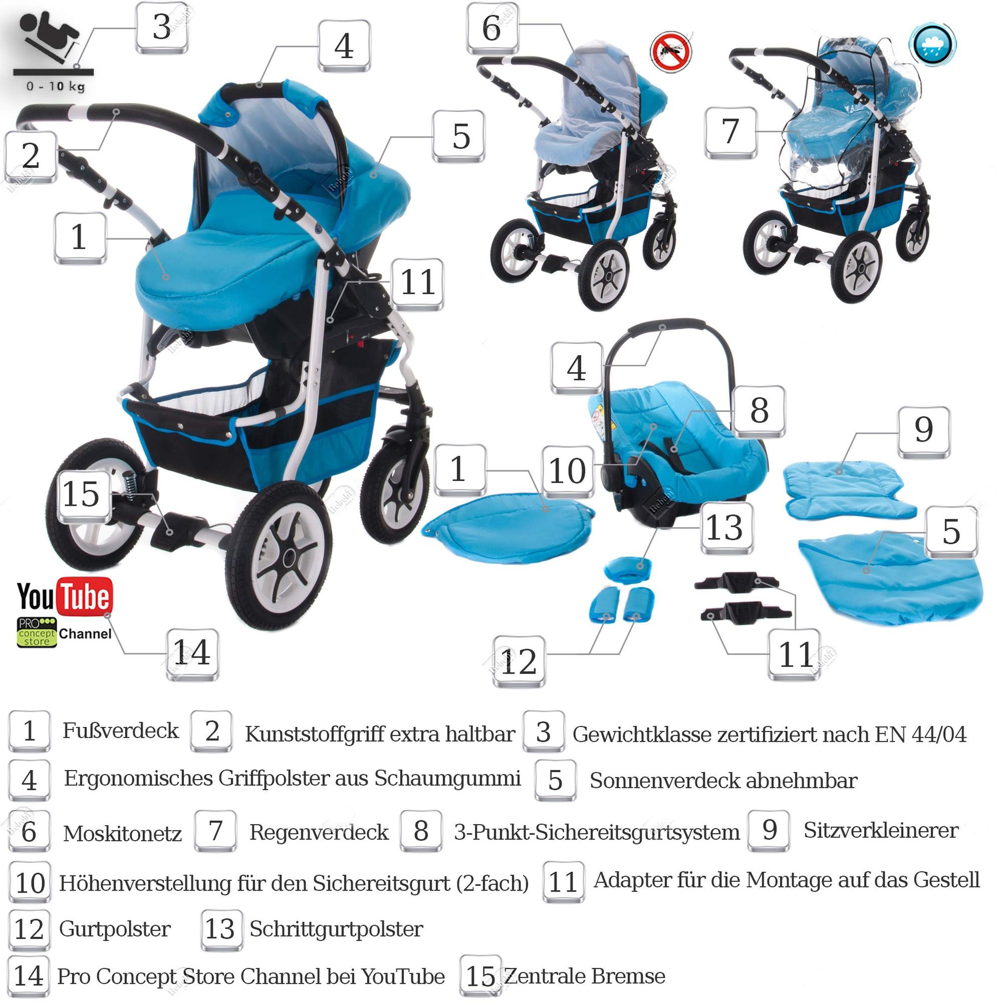 • GagaDumi SoHo 3-in-1 Kinderwagen Set - TÜV-zertifiziert Mit I-Size Sitz