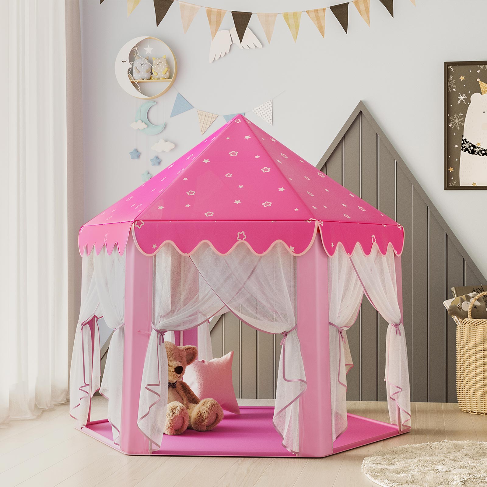 Auf zur Burg! Dieses süße Ritterburg-Zelt von KOMBIUDA begeistert kleine Abenteurer. Mit 100x135cm bietet es genug Platz zum Spielen, Lesen oder sogar für ein Nickerchen. Das wasserabweisende Material ist robust und langlebig - perfekt für drinnen und draußen. Die Aufbauanleitung ist kinderleicht, kein Werkzeug nötig. Das Burg-Design mit Türmchen und Fenstern regt die Fantasie an und fördert kreatives Spielen. Ob im Kinderzimmer, Wohnzimmer oder im Garten - dieses Zelt ist immer der Hit! Die glatte Oberfläche ist leicht zu reinigen, einfach mit feuchtem Tuch abwischen. Ein tolles Geschenk für Geburtstage, Weihnachten oder einfach so. Einfach aufbauen und in die Märchenwelt eintauchen!