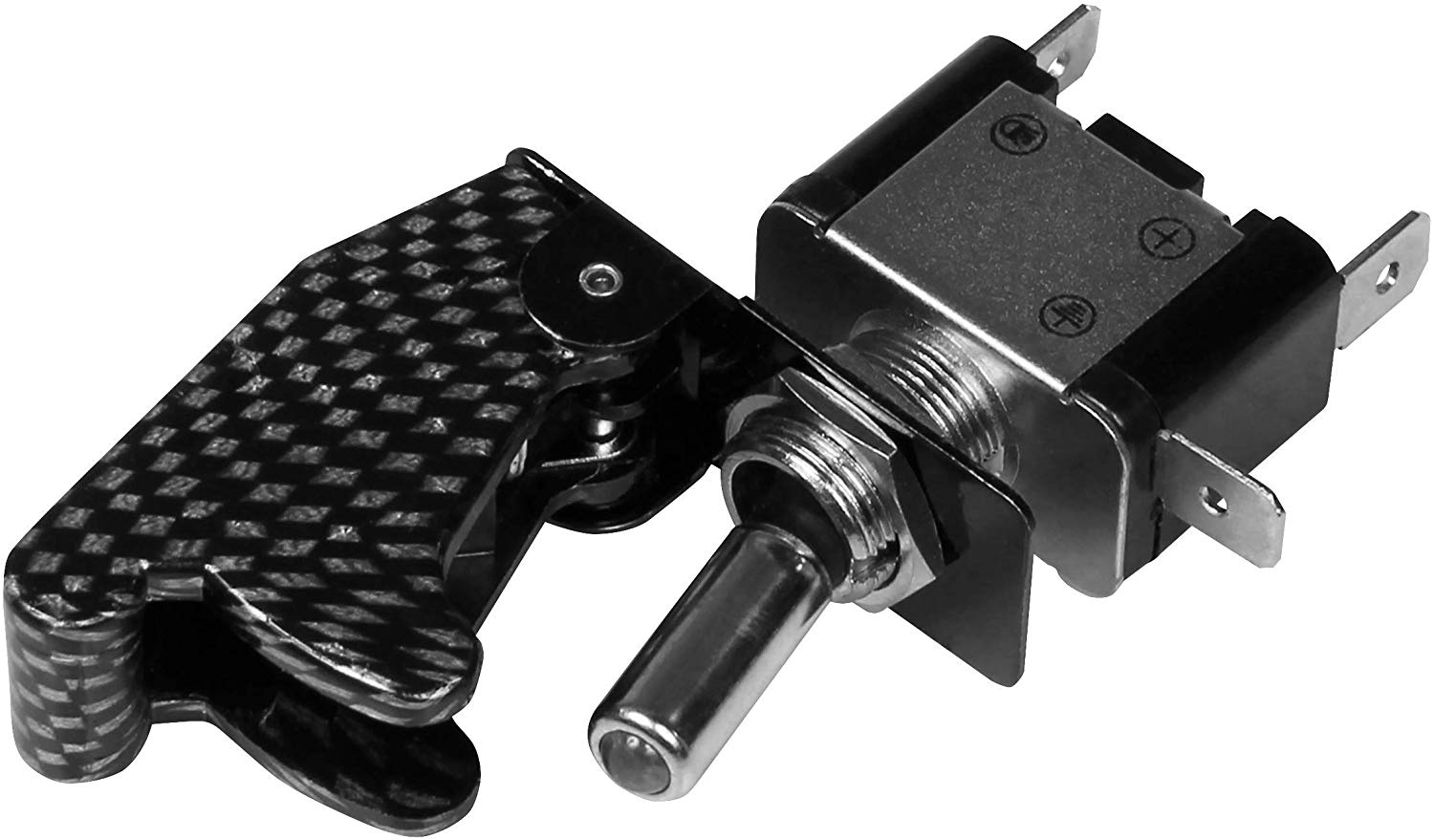 Abgefahrener Carbon-Look für dein Auto! Dieser Kill Switch in Racing-Optik ist perfekt für Zusatzbeleuchtung, Soundanlagen oder andere 12V-Verbraucher. Mit roter LED-Beleuchtung, die richtig cool leuchtet. Handelt 20A - also genug Power für die meisten Anwendungen. Maße: 5,5x4,5cm - passt fast überall hin. Einfache Installation, kein Bohren nötig. Super für Tuning-Fans, die ihr Auto individueller machen wollen. Ob für Fußraumbeleuchtung, Nebelscheinwerfer oder andere Extras - mit diesem Schalter hast du alles unter Kontrolle. Sieht aus wie aus dem Rennsport!