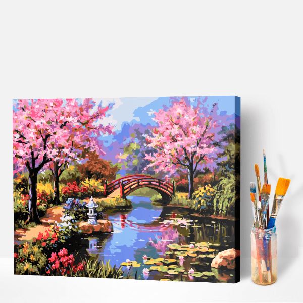 Kreative Köpfe, aufgepasst! Dieses NEWENMO Malen-nach-Zahlen Set bringt chinesische Architektur mit Kirschblüten auf die Leinwand. Maße: 40x50cm - perfekt für die Wohndekoration!