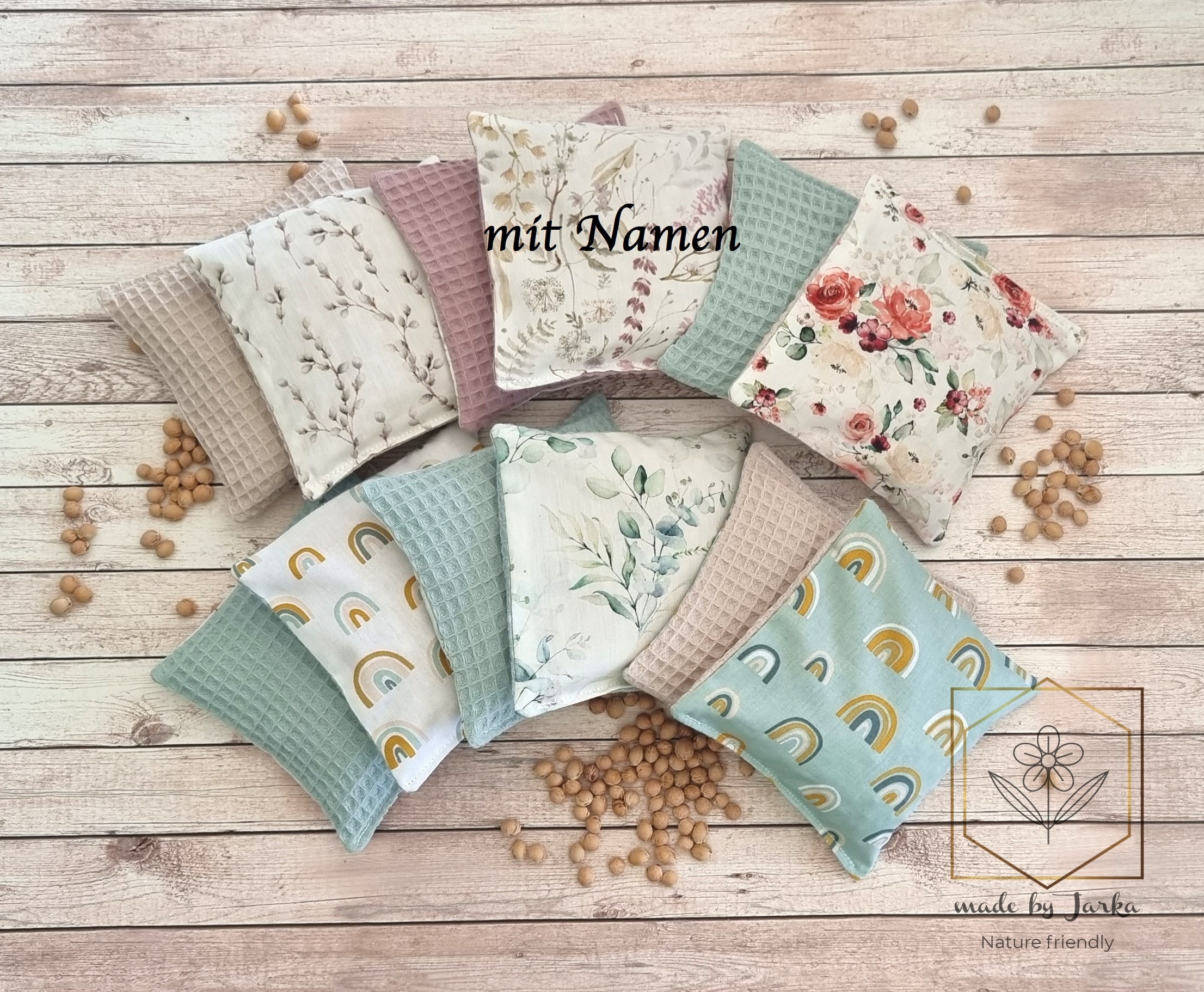Wärme, die persönlich wird! Dieses Kirschkernkissen kannst du mit einem Namen und Initiale personalisieren - zum Beispiel 'A is for Anna'. So weiß jeder, wem die wohltuende Wärme gehört! Das Kissen misst 21x21 cm und ist damit perfekt für Nacken, Schultern oder den Bauch. Der Bezug aus 100% Baumwolle fühlt sich super weich an und ist bei 40°C waschbar - praktisch für die tägliche Nutzung. Innen stecken 350 Gramm Kirschkerne, die Wärme besonders lange und gleichmäßig speichern. Das Aufheizen ist einfach: Entweder in der Mikrowelle oder im Backofen - in wenigen Minuten ist es einsatzbereit. Perfekt bei Verspannungen, Regelschmerzen oder einfach zum Kuscheln an kalten Tagen. Der Klettverschluss an der Unterseite macht das Befüllen und Reinigen super einfach. Das Kissen wird in Thüringen hergestellt und binnen weniger Tage nach deiner Bestellung produziert und verschickt - frisch und direkt zu dir! Ein ideales Geschenk für jeden Anlass: Geburtstage, Weihnachten, Einzug oder einfach als Aufmerksamkeit für deine Liebsten. Auch für dich selbst ist dieses personalisierte Kissen ein echter Gewinn - praktisch, wohltuend und einmalig!