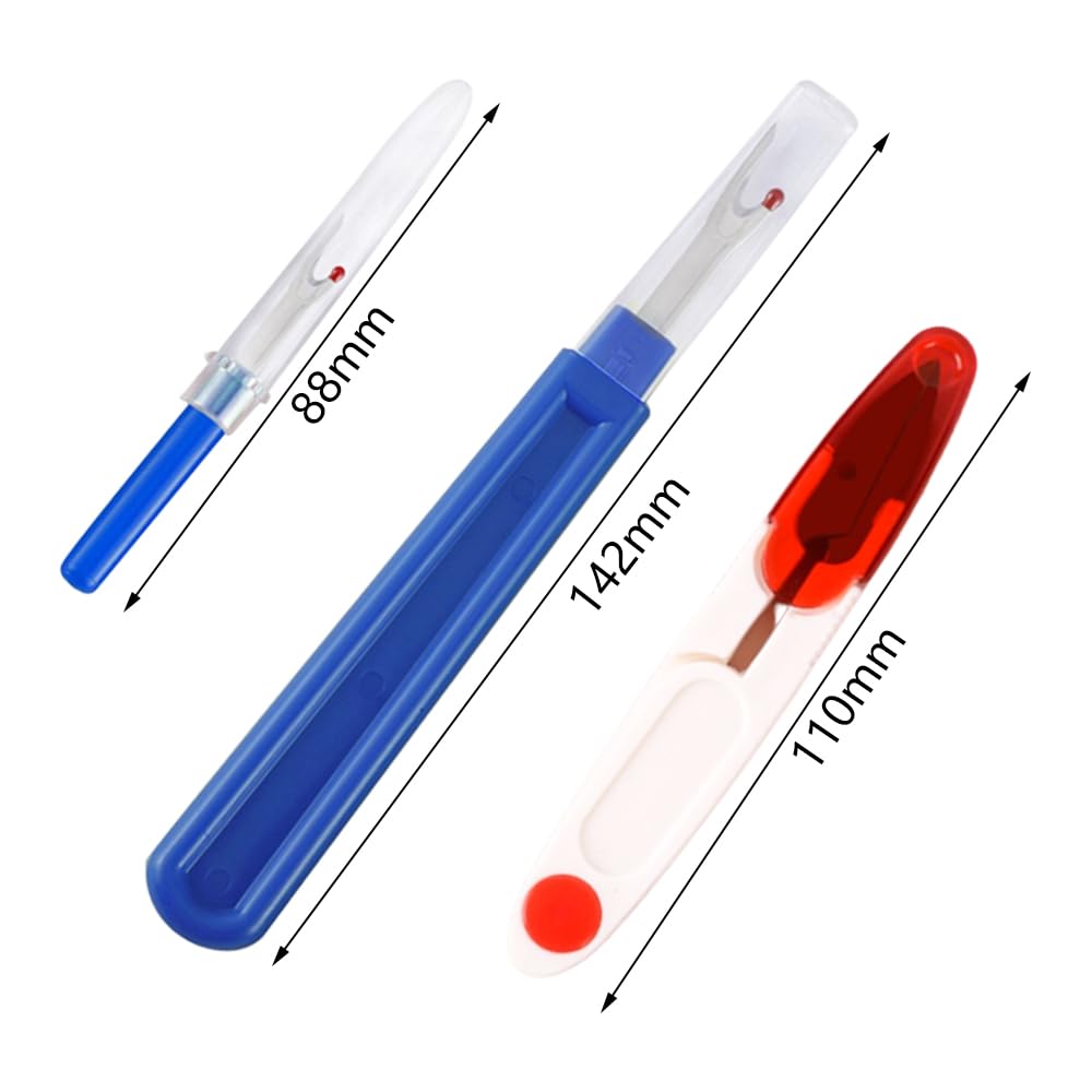 Perfekt ausgestattet für alle Näh-Projekte! Dieses praktische Kit enthält alles, was du zum Auftrennen von Nähten brauchst: 2 große Nahttrenner (14,5cm), 2 kleine Nahttrenner (8,7cm), 50 Nähklammern, 2 Scheren, ein 150cm Maßband und eine transparente Aufbewahrungstasche. Die Nahttrenner haben schlaue Schutzkappen mit roten Kugeln an den Spitzen - so beschädigst du deine Stoffe nicht! Super für das Entfernen von Fadenenden, Etiketten oder zum Korrigieren von Nähten. Alles verstaut sicher in der mitgelieferten Tasche - kein Suchen mehr! Die Werkzeuge sind aus hochwertigem Metall und Kunststoff und fühlen sich gut in der Hand an. Ob Profi oder Nähanfänger - mit diesem Set machst du nichts verkehrt. Einfach die gewünschte Größe auswählen und lostrennen! Praktischer geht's kaum. Endlich Ordnung in deiner Näh-Ecke! Dieses Set ist ein echter Game-Changer für alle, die gerne nähen oder ihre Kleidung reparieren.