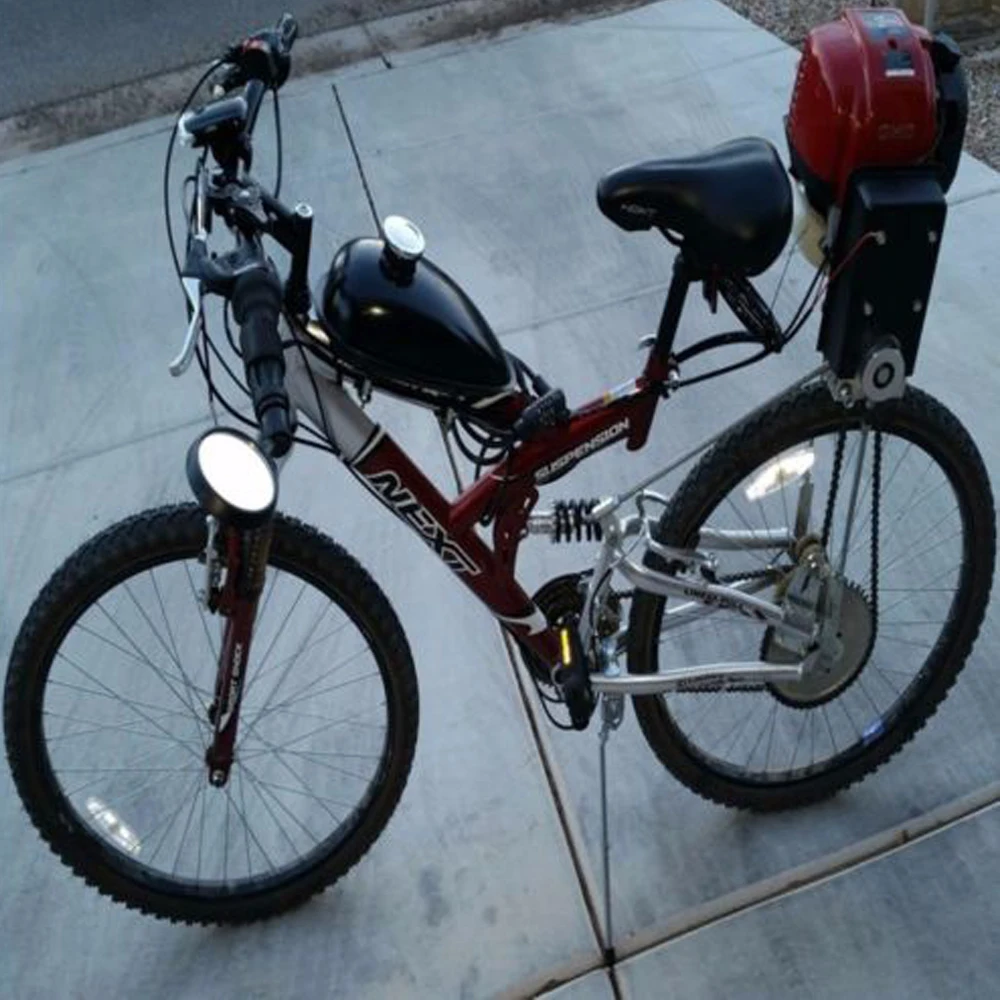 Bock auf mehr Speed und Abenteuer? Mit diesem 100CC 2-Takt Fahrrad-Motor-Kit verwandelst du dein normales Fahrrad in ein cooles Motorrad! Erreich Geschwindigkeiten bis zu 45 km/h und erlebe deine Fahrradtouren ganz neu. Das Kit passt für die meisten 26-Zoll und 28-Zoll Fahrräder mit V-Rahmen - ob Mountainbike, Trekkingrad oder Citybike. Mit einer maximalen Traglast von 200 kg ist es robust genug für fast jede Situation. Der 2-Liter-Tank ermöglicht längere Touren ohne ständiges Nachtanken. Wichtig: Benutze immer ein Benzin-Öl-Gemisch (16:1 in der Einfahrphase, danach 20:1) und achte auf die Einfahrvorschriften - in den ersten 500km nicht schneller als 20 km/h fahren! Das Komplett-Set enthält alles für den Einbau, aber wir empfehlen eine professionelle Installation. Lies die Anleitung genau durch und schon geht's los zu aufregenden Abenteuern!