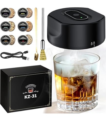 Verwandle deine Drinks in rauchige Köstlichkeiten! Dieses elektrische Cocktail Smoker Kit bringt professionelles Räuchern nach Hause. Einfache Bedienung per Knopfdruck - ohne offene Flammen, absolut sicher! Mit 6 verschiedenen Holzsorten: Eiche, Apfel, Pekanuss, Birne, Kirsche und Buche - für unendliche Geschmacksvariationen. Perfekt für Whiskey, Cocktails, aber auch für Käse, Fleisch oder Desserts. Inklusive praktischem Abdeckdeckel für konzentrierten Rauch. Elegantes Schwarz-Design - ein echter Hingucker für deine Home-Bar! Maße: 18x16x9cm, 439g Gewicht. Das ideale Geschenk für Whiskey-Liebhaber und Hobby-Barkeeper! Beeindrucke deine Gäste mit einzigartigen, geräucherten Kreationen.