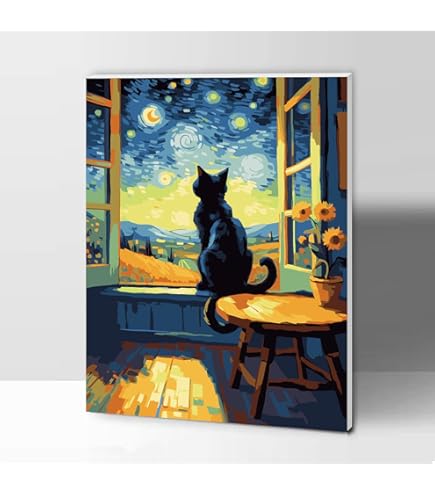 Total entspannend - dieses Malen nach Zahlen Kit mit der süßen schwarzen Katze! Die Leinwand ist schon auf einen Holzrahmen gespannt (30x40cm), also knittert nichts und du kannst sofort loslegen. Im Set sind Acrylfarben, 3 Pinsel in verschiedenen Größen, Haken und eine Anleitung enthalten. Selbst wenn du noch nie gemalt hast - mit den nummerierten Feldern geht das ganz easy. Einfach die entsprechende Farbe auf die nummerierten Bereiche auftragen und nach und nach entsteht ein tolles Bild. Perfekt zum Abschalten nach einem stressigen Tag oder als gemeinsame Aktivität mit Kindern (ab 9 Jahren). Die Farben sind ungiftig und umweltfreundlich, decken super ab. Wenn du fertig bist, hast du ein wunderschönes Bild für deine Wohnung - ob im Wohnzimmer, Schlafzimmer oder Flur. Auch ein super Geschenk für Geburtstage, Weihnachten oder einfach so. Mach dich bereit für ein neues Hobby!