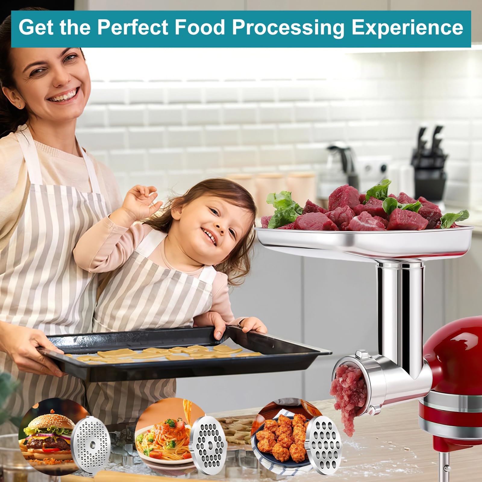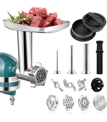 Wow, dieser Fleischwolf-Aufsatz für deine KitchenAid ist ein echter Game-Changer in der Küche! Aus hochwertigem Edelstahl und passt perfekt auf alle KitchenAid Standmixer. Bis zu 3 Pfund Fleisch in unter einer Minute zerkleinert - ohne Verstopfen! Mit dabei: 3 Wurstfülltrichter für eigene Würstchen, 4 verschiedene Siebe, Messer und sogar eine Reinigungsbürste. Damit kannst du nicht nur Fleisch wolfen, sondern auch Gemüse raspeln, Käse reiben oder Nüsse zerkleinern. Alles lässt sich leicht zerlegen und von Hand reinigen. Perfekt für Burger, Frikadellen oder hausgemachte Würste - einfach genial!
