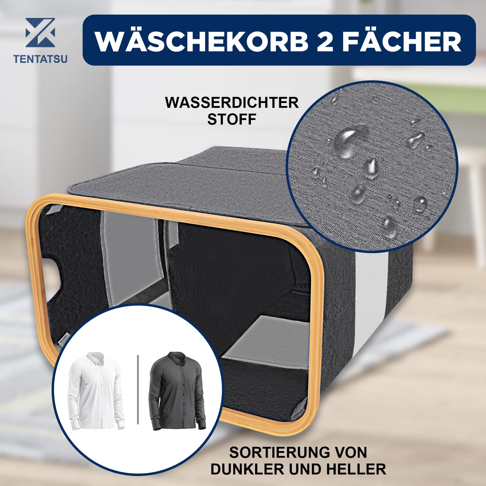 Das geniale Feature: Die Körbe lassen sich platzsparend zusammenfalten! Perfekt für kleine Wohnungen, Wohnheime oder wenn mal Gäste kommen. Ein Korb für Buntwäsche, einer für Weißes - so wird Wäschewaschen zum Kinderspiel!