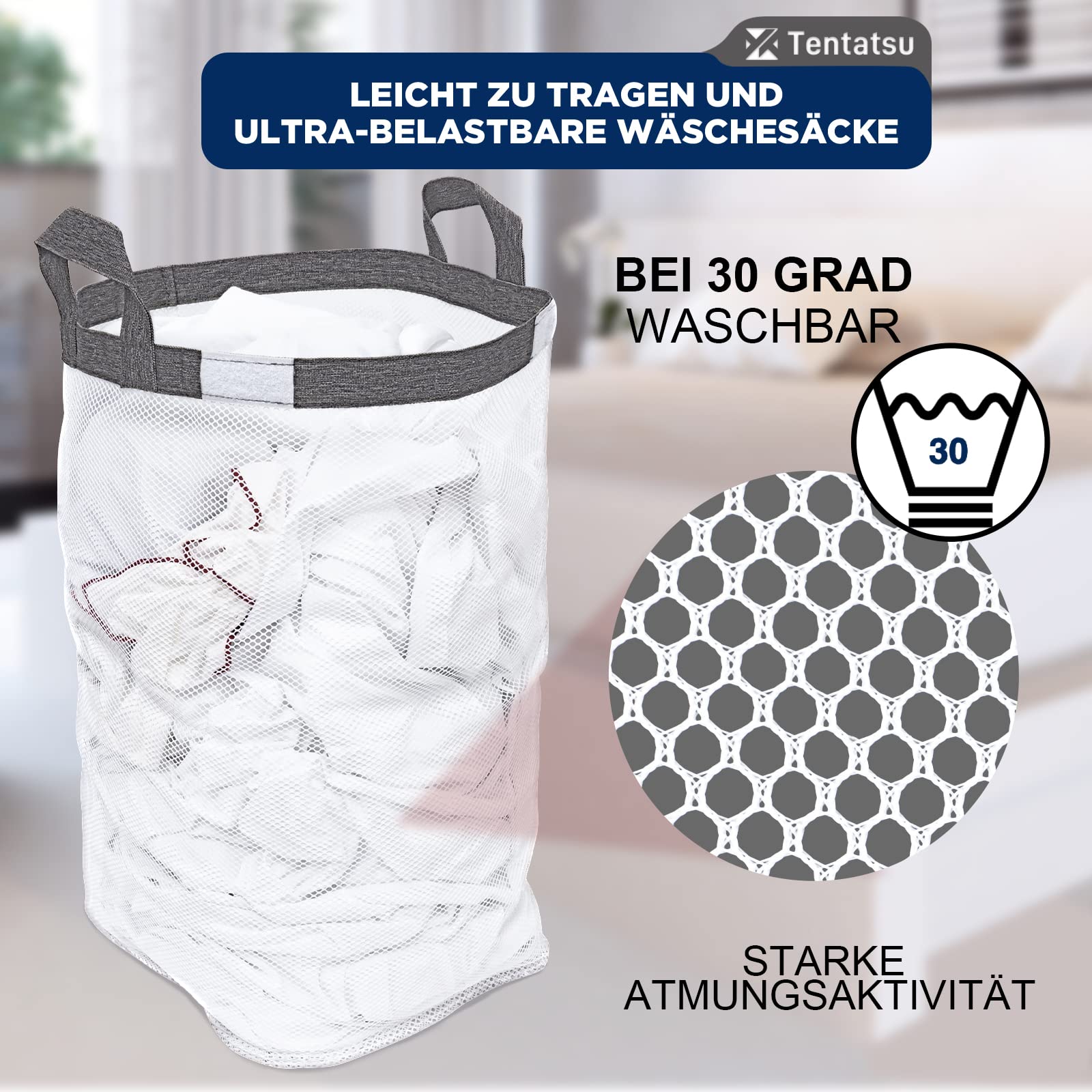 Die stabilen Tragegriffe machen das Transportieren zur Waschmaschine super einfach - selbst wenn der Korb voll beladen ist. Und das offene Design sorgt dafür, dass du deine Wäsche einfach reinschmeißen kannst.