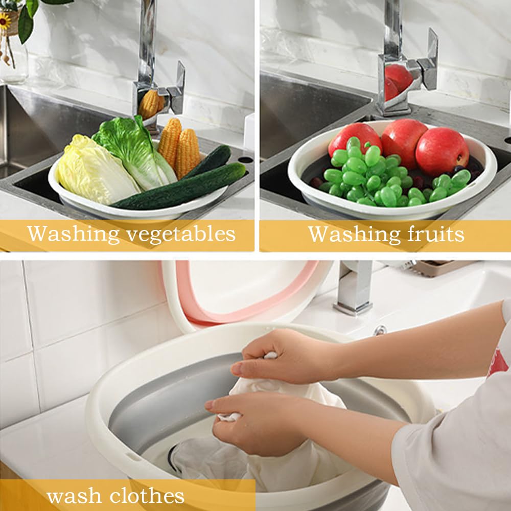 Wie praktisch ist das denn? Diese faltbare Waschschüssel ist dein neuer Alltagsheld! Wenn du sie brauchst, ist sie in Sekunden aufgebaut - 32cm Durchmesser bieten genug Platz zum Waschen, Spülen oder als Mini-Badewanne. Und wenn nicht, klappst du sie einfach zusammen auf nur 5cm Höhe. Super für Camping-Ausflüge, Picknicks oder auch in der kleinen Stadtwohnung wo Platz knapp ist. Die Aufhängeöschen sind genial - einfach irgendwo aufhängen und das Wasser abtropfen lassen. Der rutschfeste Boden sorgt für Stabilität. Aus robustem PP-Material das hitzebeständig ist und keine Schadstoffe abgibt. Ob fürs Gesichtswaschen morgens, zum Füßebaden abends oder zum Gemüseputzen in der Küche - diese Schüssel kann einfach alles! Viel besser als mehrere einzelne Behälter zu kaufen. Einfach auspacken, aufklappen, benutzen, zusammendrücken und wegstellen - einfacher geht's nicht!