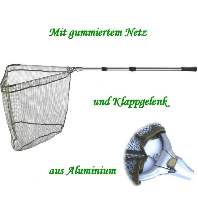 Der Cormoran UltraStrong Klappkescher - ein echter Profi-Kescher für anspruchsvolle Angler! Mit 2,20 m Länge (teleskopierbar auf 97 cm Transportlänge) und gummiertem Netz das perfekte Fangwerkzeug. Das geruchsneutrale Rubber-Coated-Netz hat 15x8 mm Maschen, der Boden sogar 6 mm für sicheren Fischfang. Der massive Aluminium-Gelenkkopf ist klappbar, die 9 mm Kescherarme super stabil. Der Gun-Smoke-eloxierte Teleskopstock verdreht sich nicht beim Ausziehen und lässt sich mit Metall-Schraubverschlüssen fixieren. Leichtes Polyesternetz in Grün, absolut wasserabweisend und langlebig. Perfekt für alle, die Wert auf Qualität und Funktionalität legen. Ob Forelle, Hecht oder Karpfen - mit diesem Kescher landest du jeden Fisch sicher und schonend. Made for fishing enthusiasts!