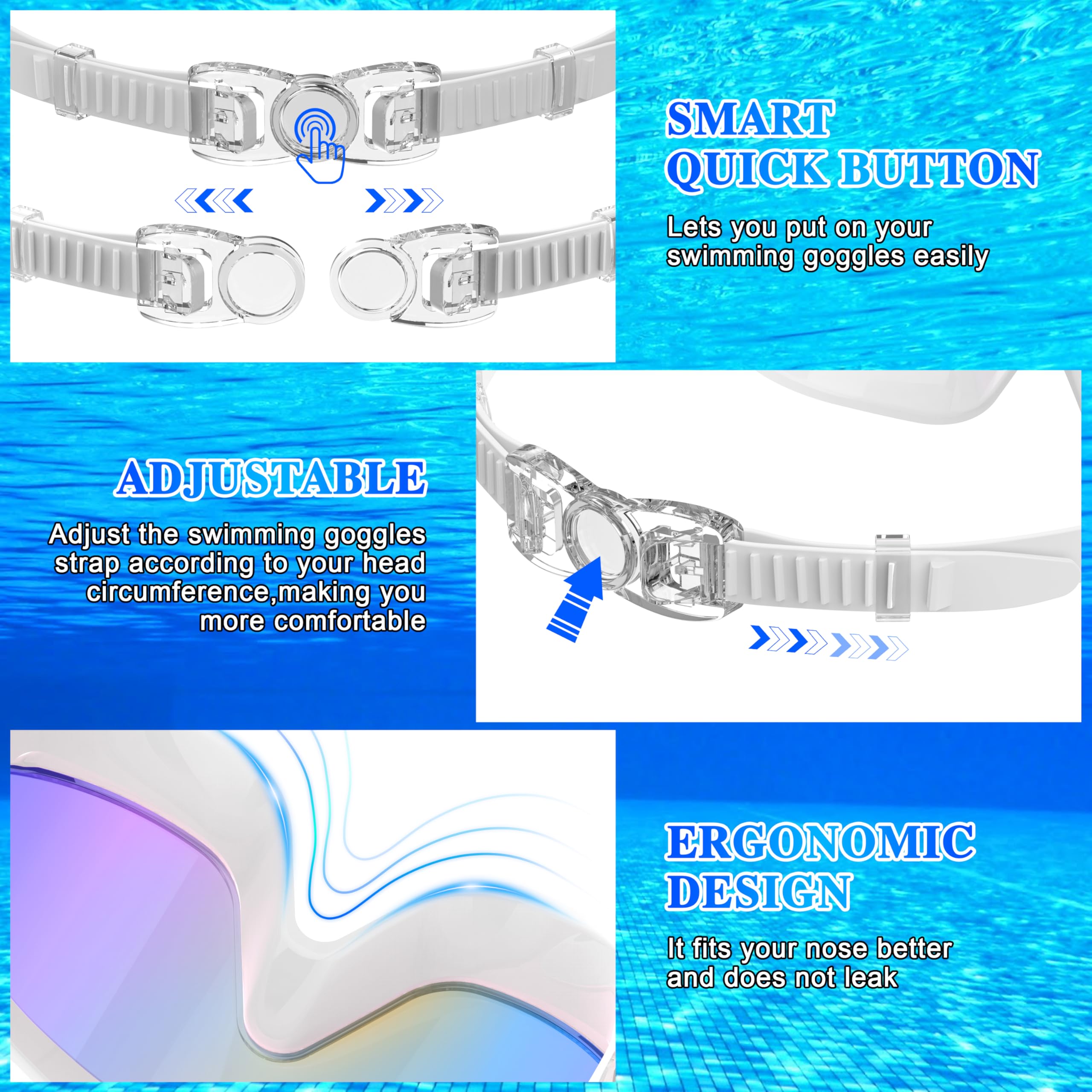 Endlich ne Schwimmbrille, die nicht ständig beschlägt! Die Ambienden Brille hat ne super coole 3D Anti-Beschlag-Technologie - das heißt: Du siehst bis zu 12 Stunden lang kristallklar. Und das Sichtfeld ist riesig! Mit 180° Panorama-Blick verpasst du nichts, ob beim Bahnen schwimmen oder beim Schnorcheln im Urlaub. Die Dichtung ist extra weich und dick (5 mm!), damit auch bei Saltos kein Wasser reinkommt. Und für alle, die gerne outdoor schwimmen: Die Brille hat UV-400 Schutz - da bleiben deine Augen safe vor der Sonne. Egal ob im Hallenbad oder im Meer, die Brille reduziert die Blendung total gut. Das Headband-System ist mega praktisch - einfach schnell verstellen und schon sitzt die Brille perfekt. Mit nur 80 Gramm merkst du die Brille kaum auf der Nase. Für Anfänger genauso gut wie für Profis - und die Farben sind auch noch total stylish. Ob Triathlon, Aqua-Fitness oder einfach nur planschen mit den Kids - mit dieser Brille macht schwimmen gleich doppelt Spaß!