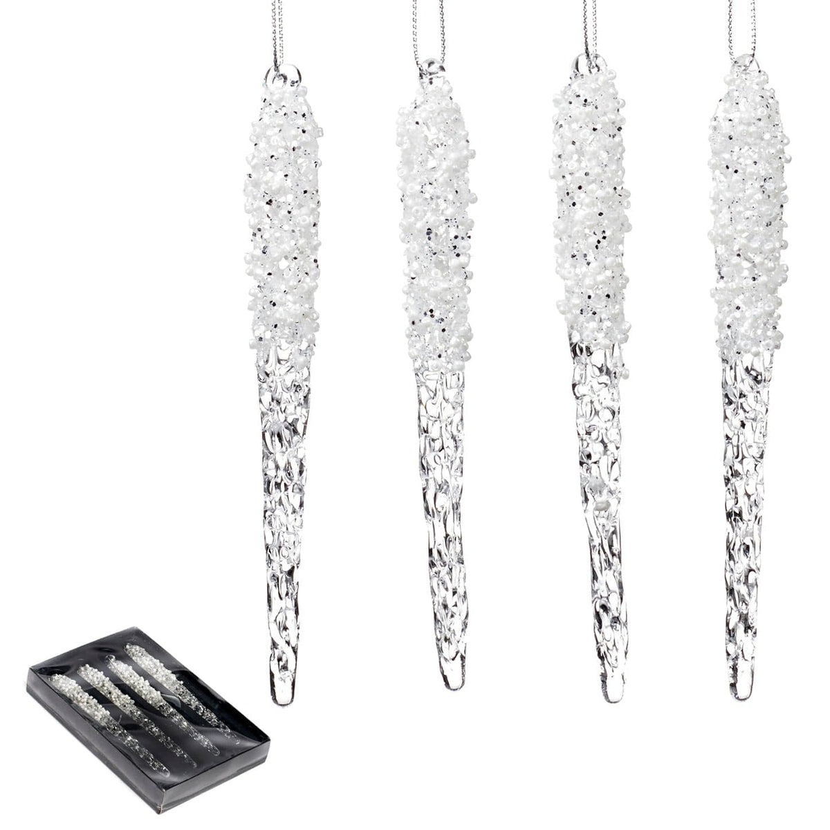 Weihnachtsfans, diese eleganten Eiszapfen bringen winterlichen Glanz an euren Baum! Aus hochwertigem Kunststoff mit klarem Glas-Effekt sehen sie täuschend echt aus. Das gedrehte Design verleiht jedem Zapfen eine besondere Eleganz. Mit 2m Gesamtlänge habt ihr reichlich Schmuck für einen großen Baum. Jeder Zapfen hat bereits eine Aufhängeschnur - einfach an den Baum hängen und fertig! Perfekt kombinierbar mit Lichterketten für einen magischen Glanz. Nicht nur für den Weihnachtsbaum, sondern auch tolle Deko für Fenster, Girlanden oder Türkränze. Schafft eine festliche Atmosphäre in Wohnzimmer, Büro oder Geschäft. Robust verarbeitet für viele Weihnachtsfeste. Einfach verstauen und nächstes Jahr wieder verwenden. Macht jeden Baum zum absoluten Hingucker - winterlich, elegant und zeitlos schön!